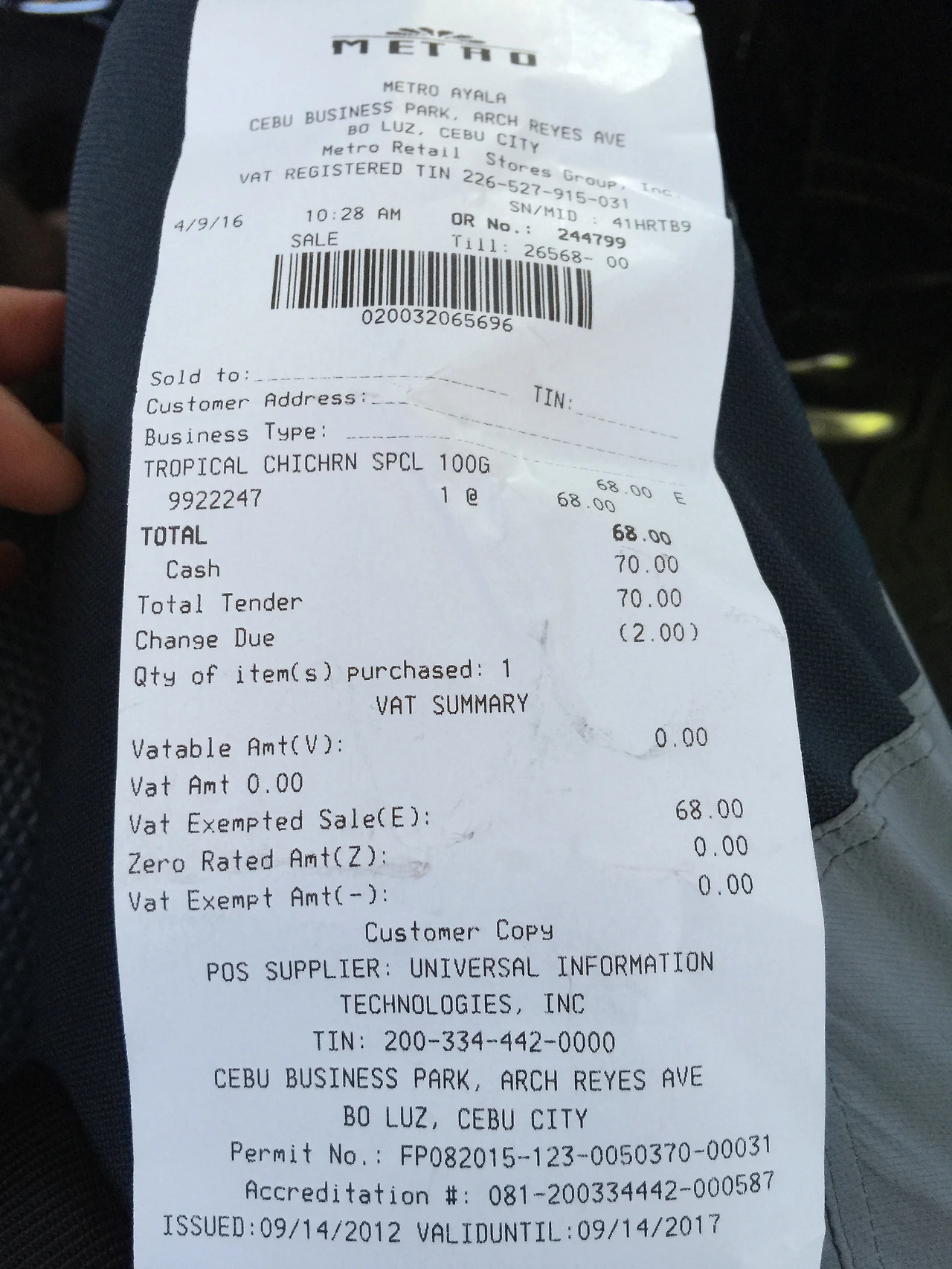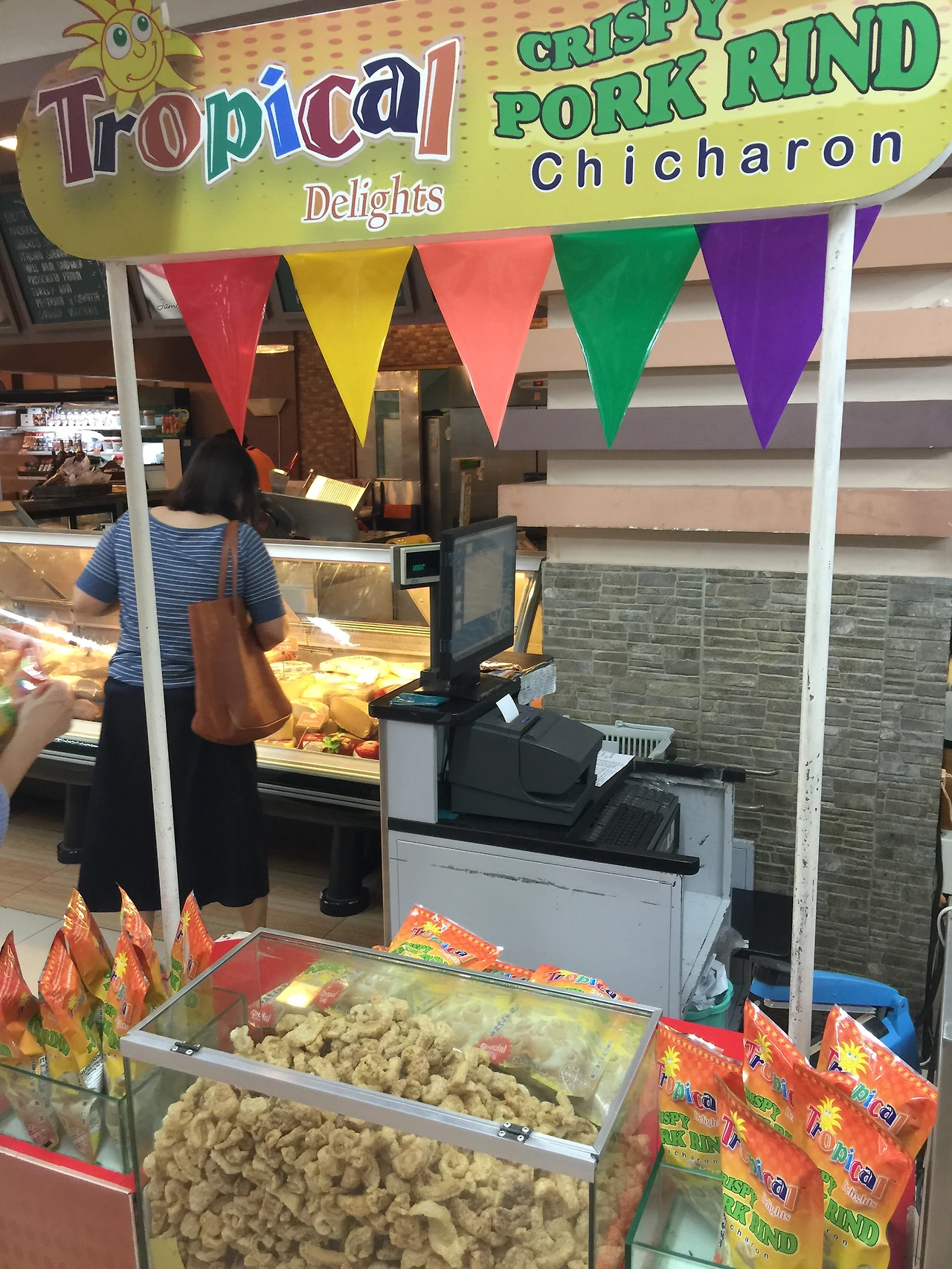 그리곤 그냥 지나쳐야 하는 건데 우리나라 마트에서도 꼭 시식대에서 아주머니한테 잡혀서 구매하게 되더니 이곳에서도 뭐 필리핀 특산물이라고 돼지 튀긴 과자를 판매하는데 결국 한 봉지 구입했다. 구입 후 알았지만 67페소 (1,800원)로 비싼 편이었다.