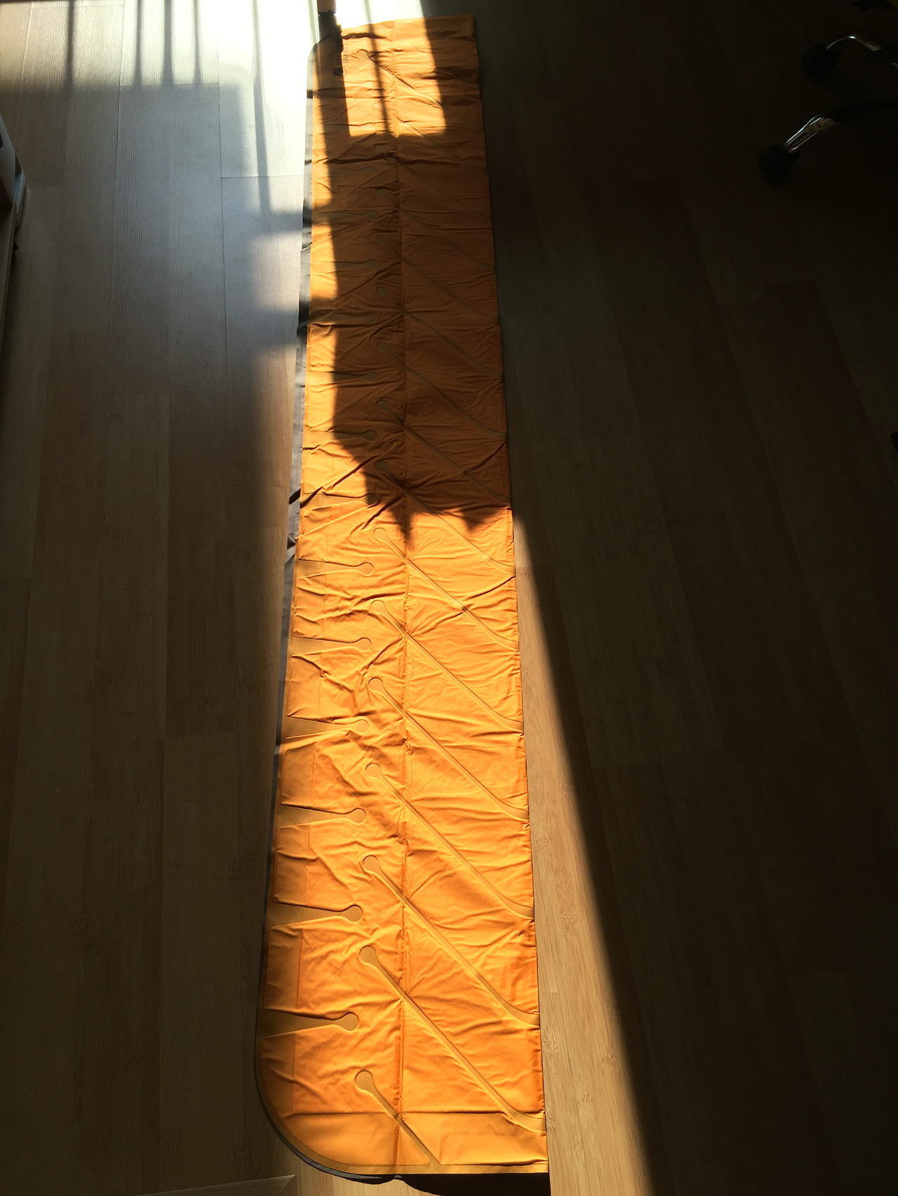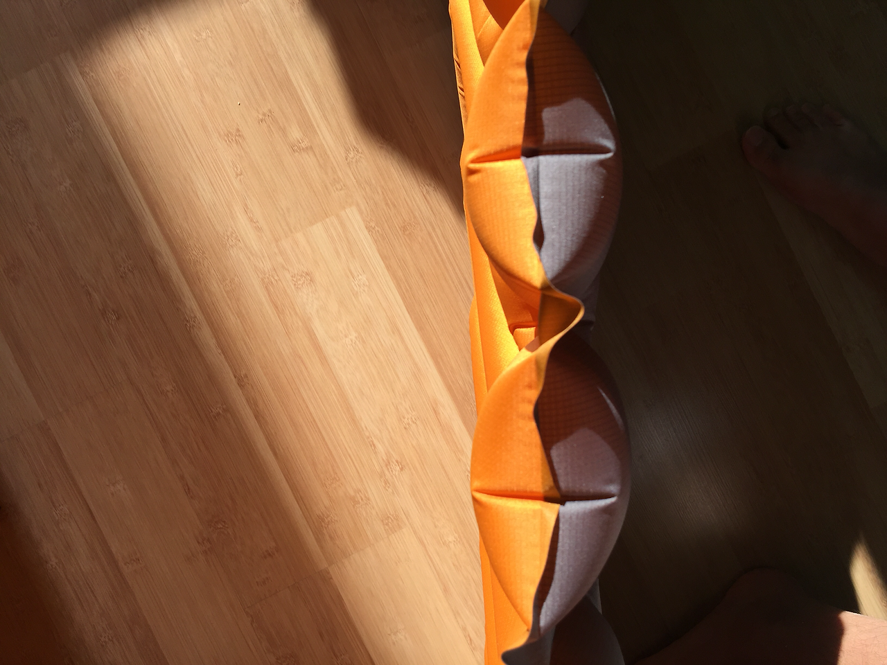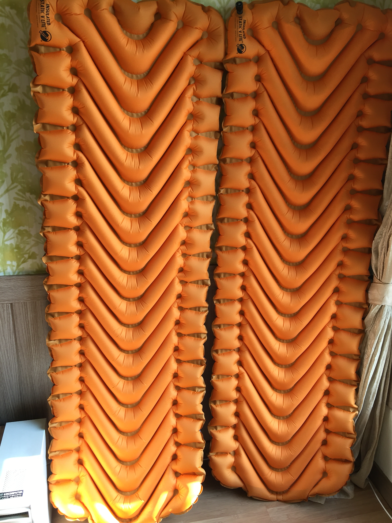 [KLYMIT]INSULATED STATIC V lite (인슐레이티드 스태틱 브이 라이트) 는 보다시피 v자 모양으로 공기가 들어가는 형태로 오히려 한쪽으로 꿀렁이는 현상이 없고 잘 잡아 주는 듯하다. 또한 천이 밀리지 않아서 편안한 잠자리를 만들어 주었다. 높이 또한 6.5cm가 되다보니 등 배김이 하나더 없어 더욱 푹 잘 수 있었다.