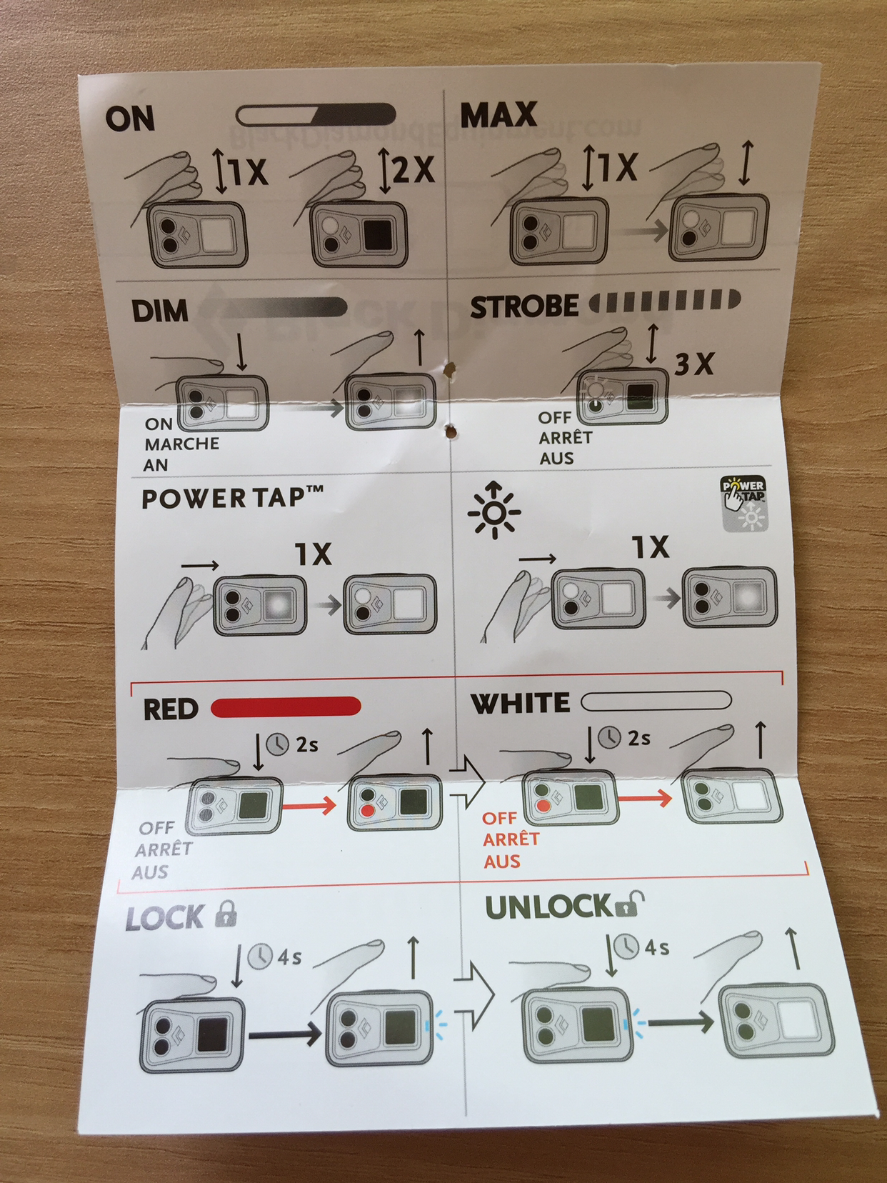 또한 손으로 앞면을 쓰윽 지나가면 꺼지거나 켜지는 옵션도 있고 배낭에 넣었을 때 눌려서 켜지는 현상을 방지하는 락 기능도 있어 정말 알차고 야무진 블랙다이아몬드 헤드랜턴이 아닐 수 없다. ㅎ