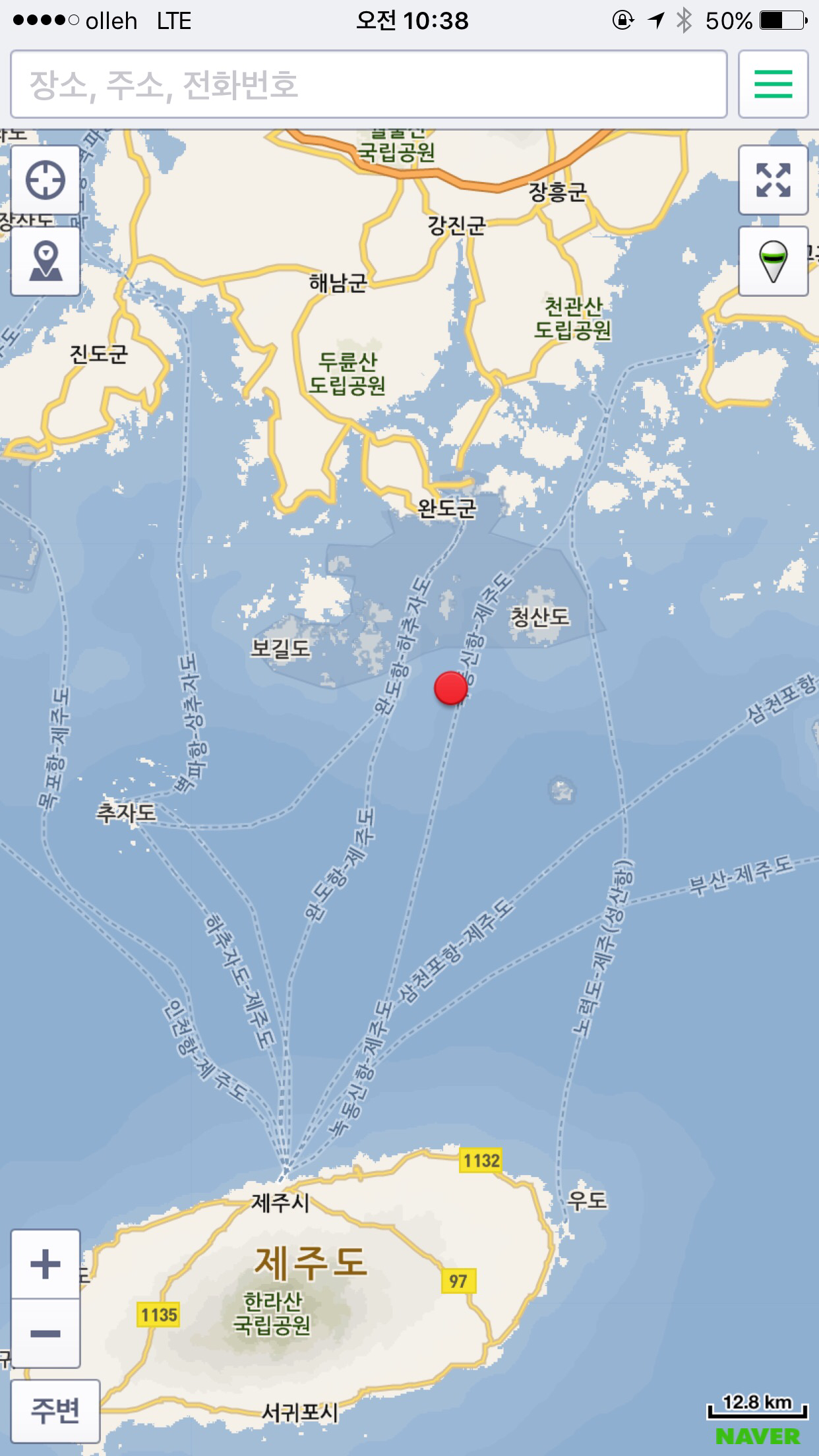 나의 현위치도 네이버지도로 표시해 보고 약 2시간이면 제주항에 도착을 한다.
