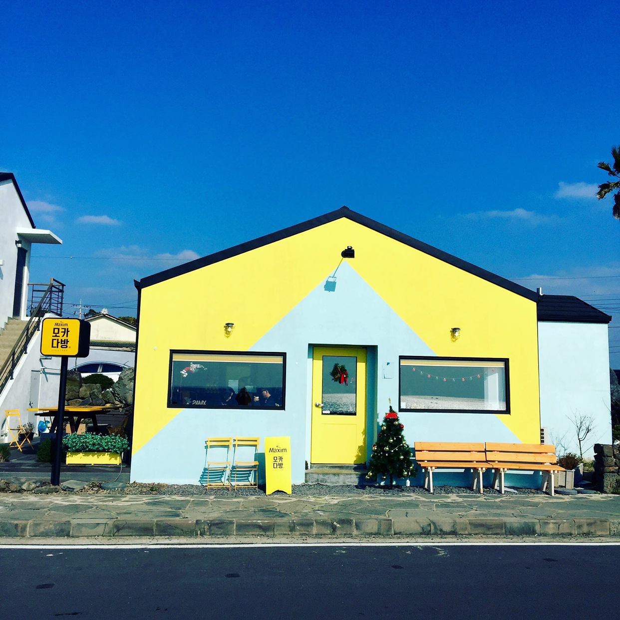 원래 카페샐리도 이뻤지만 노란색의 모카다방은 제주 남원의 바다색과 함께 무척이나 어울리는 그럼 카페였다.