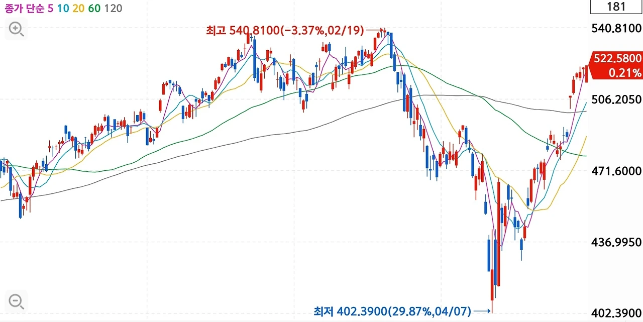 지금은 꽤나 꾸준한 상승 흐름을 이어가고 있습니다.