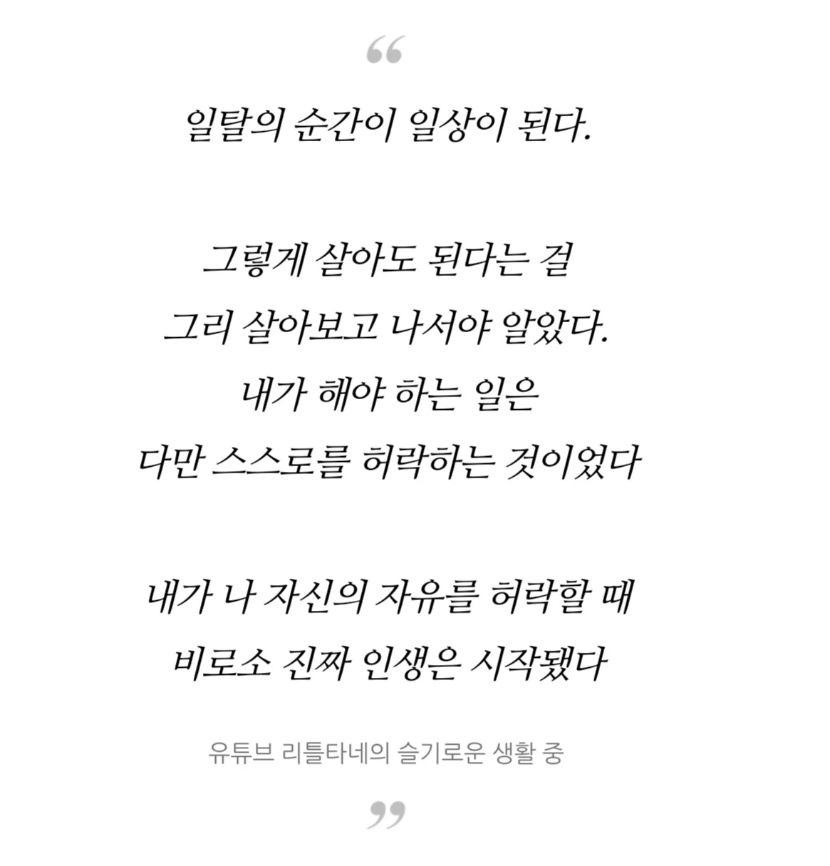 삶을 대하는 태도와 통찰이 꽤나 울림이 있습니다.