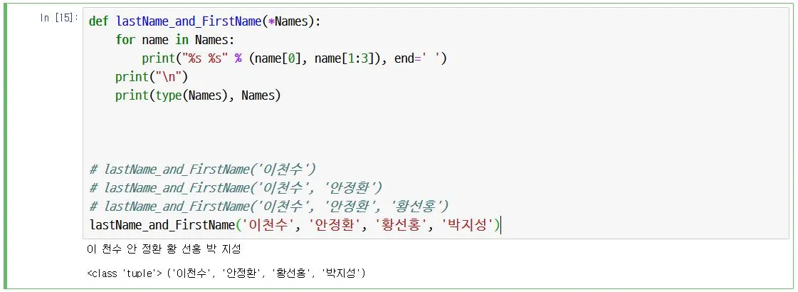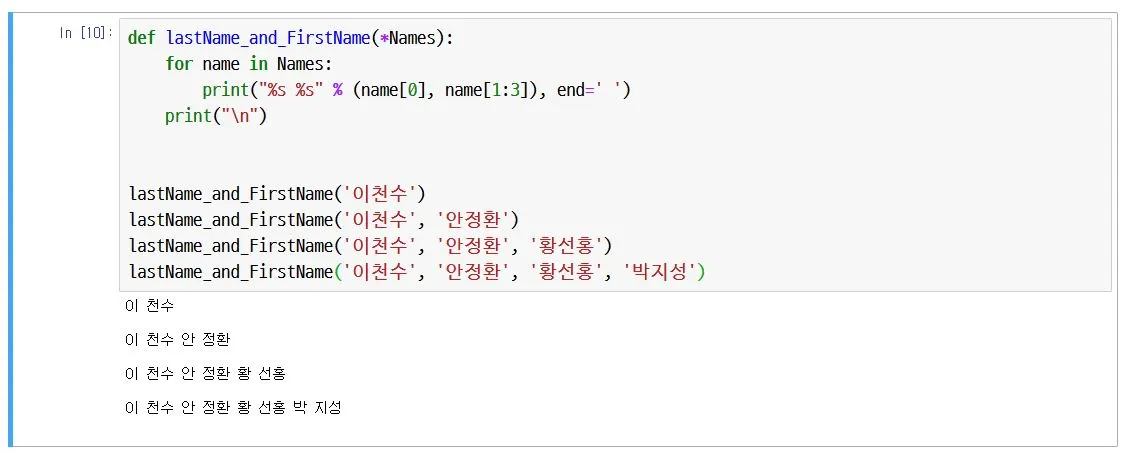 lastName_and_FirstName 함수에서는 인자를 *Names를 받습니다.