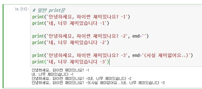우리가 익숙하게 사용하는 print문에서도 특정 키워드로 다르게 동작하게 할 수 있습니다.