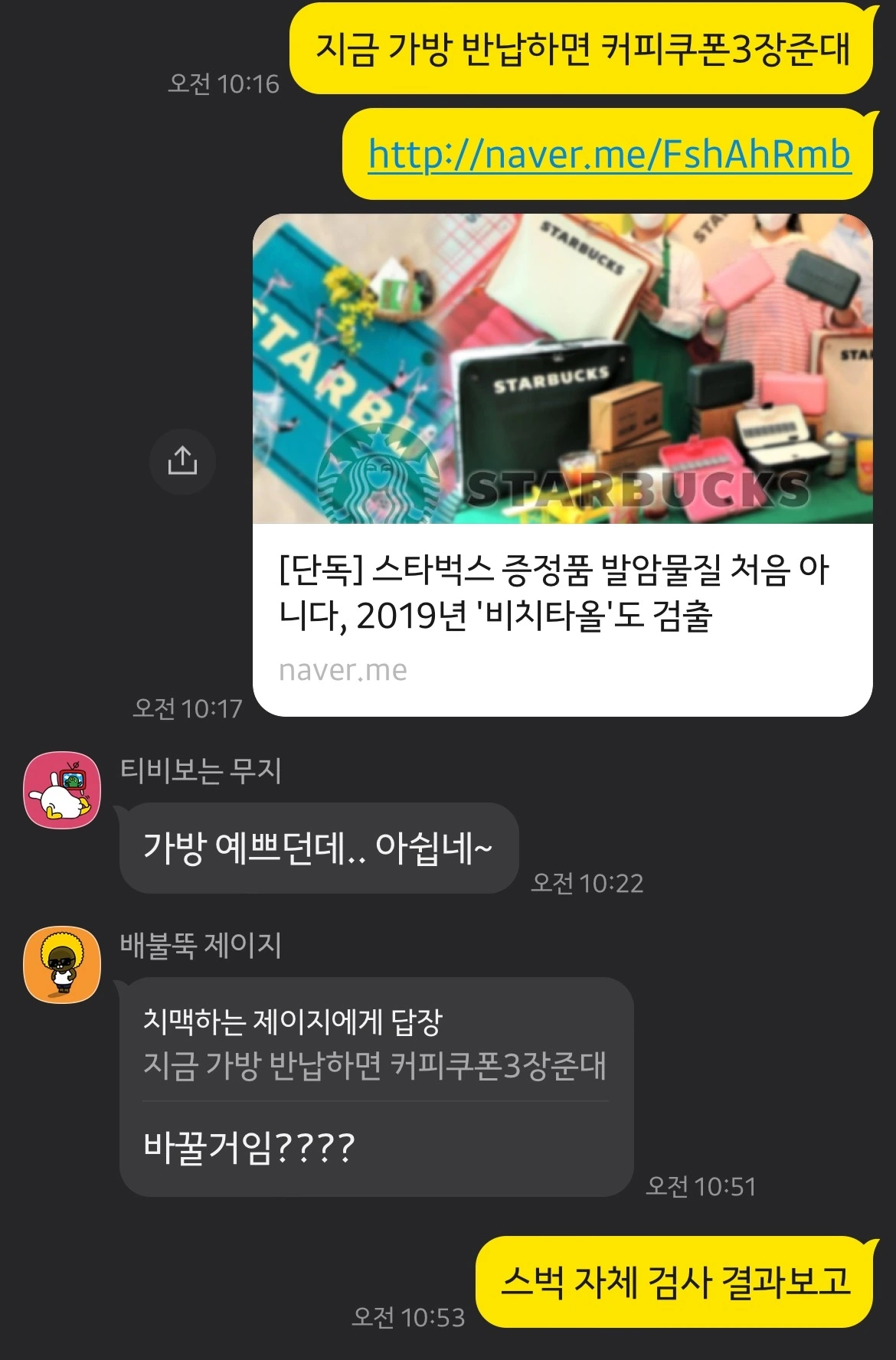 스타벅스 담당자가 일부러 가방에 폼알데하이드를 마구 넣으며