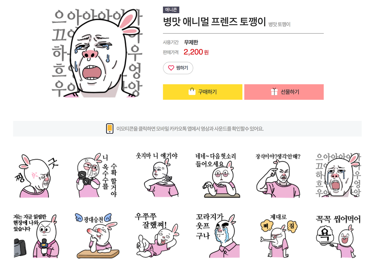 이번 기회에 함께 이모티콘을 선물하여 이용해보는 것도 괜찮을 것 같습니다.
