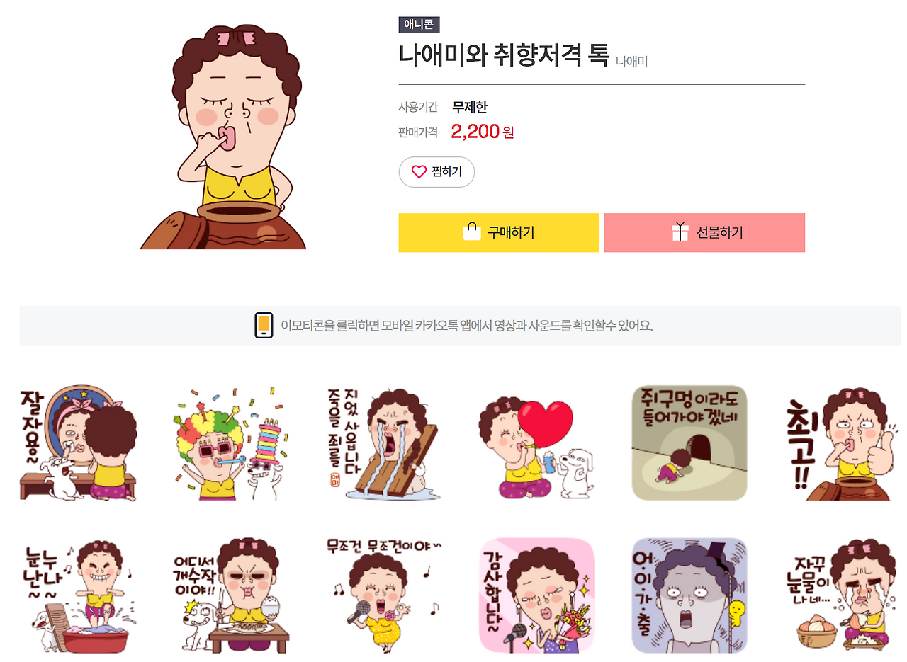 나애미 시리즈는 현재 기준으로 나애미와 취향저격 톡, 나애미와 솔찍담백 톡, 나애미와 유쾌한 톡, 나애미와 진심폭발 톡, 나애미와 백퍼 리얼톡 이렇게 5가지 이모티콘이 샵에 있습니다.