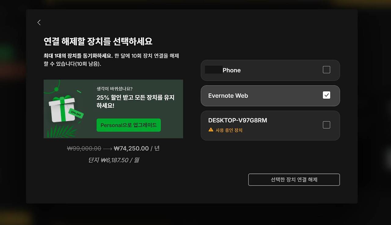 동시에 접속할 수 있는 기기의 개수를 제한하고, 노트 작성 개수도 정해버렸다.