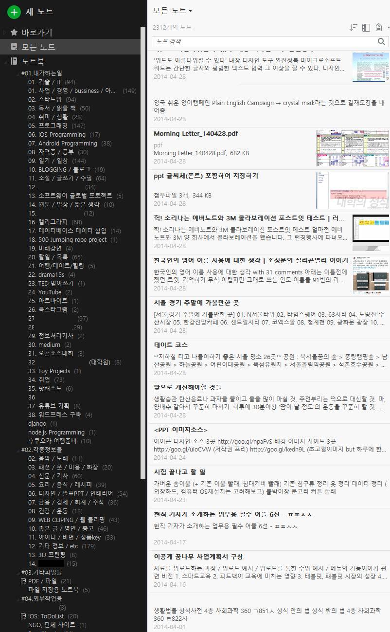 웹 클리퍼도 적극적으로 쓰고, 모든 기록과 향후 프로젝트, 회의록까지 에버노트로 정리했었다.
