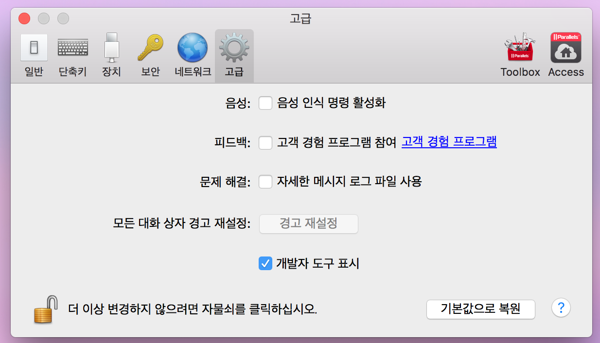 나는 이 현상을 찾기 위해 parallels 공식 홈페이지에 들어가서 온갖 FAQ를 뒤지고 해결방안을 영어로 읽으며 고통의 시간을 보냈다. (물론 구글에서 검색해서 찾아낸 페이지였다.)