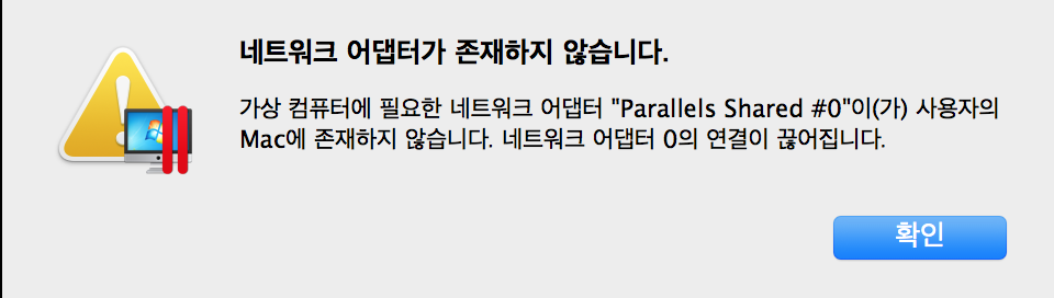 패러렐즈를 다운로드한 후 윈도우 파일로 패러렐즈를 설치하는데 이상하게 계속 네트워크 어댑터가 존재하지 않습니다.라는 메시지와 함께 인터넷이 계속 연결되지 않았다.