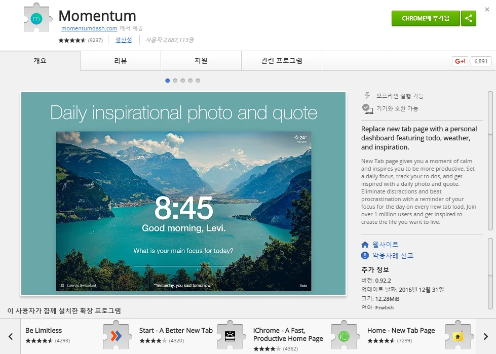 Momentum은 크롬에서 새로운 탭을 열 때마다 전 세계 각지에서 찍은 예쁜 자연 사진을 보여줍니다.
