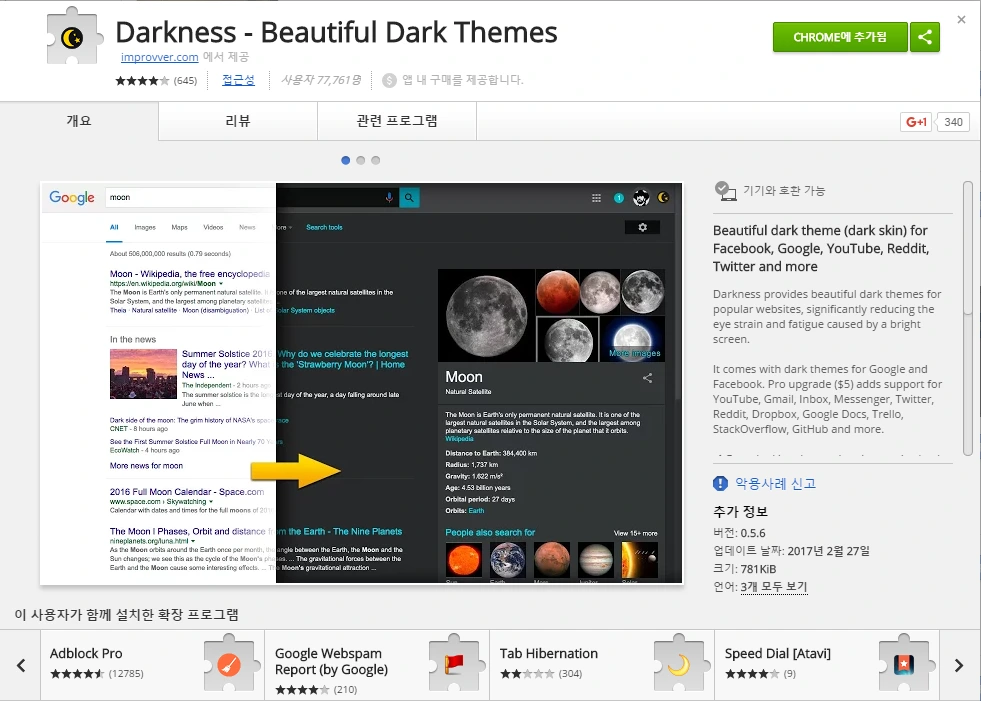 Darkness는 우리가 많이 이용하는 대표적인 사이트의 배경 색상과 테마를 바꿔주는 확장 프로그램입니다.