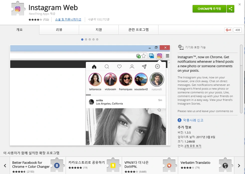 저는 현재 Instagram for Chrome을 쓰고 있는데 현재 스토어에는 검색이 안 되는 것을 보니 없어진 것 같습니다.