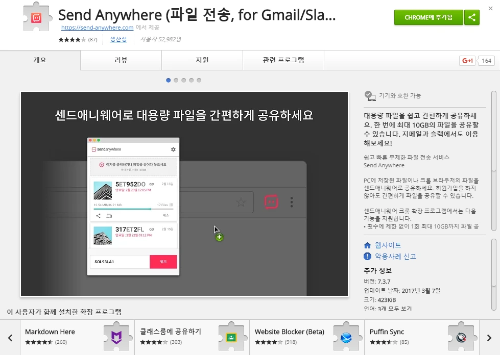 이 확장 프로그램을 통해 웹으로 파일을 전송할 수 있지만,