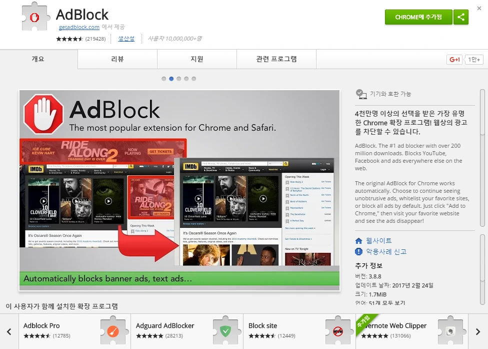 Adblock과 함께면 실제로 얼마나 노출되는지 셀 수 있습니다.