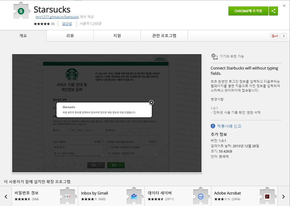 Starsucks는 스타벅스 와이파이를 이용할 때 일일이 쳐야 하는 인증을 단 1회만으로 자동화해주는 훌륭한 프로그램입니다.