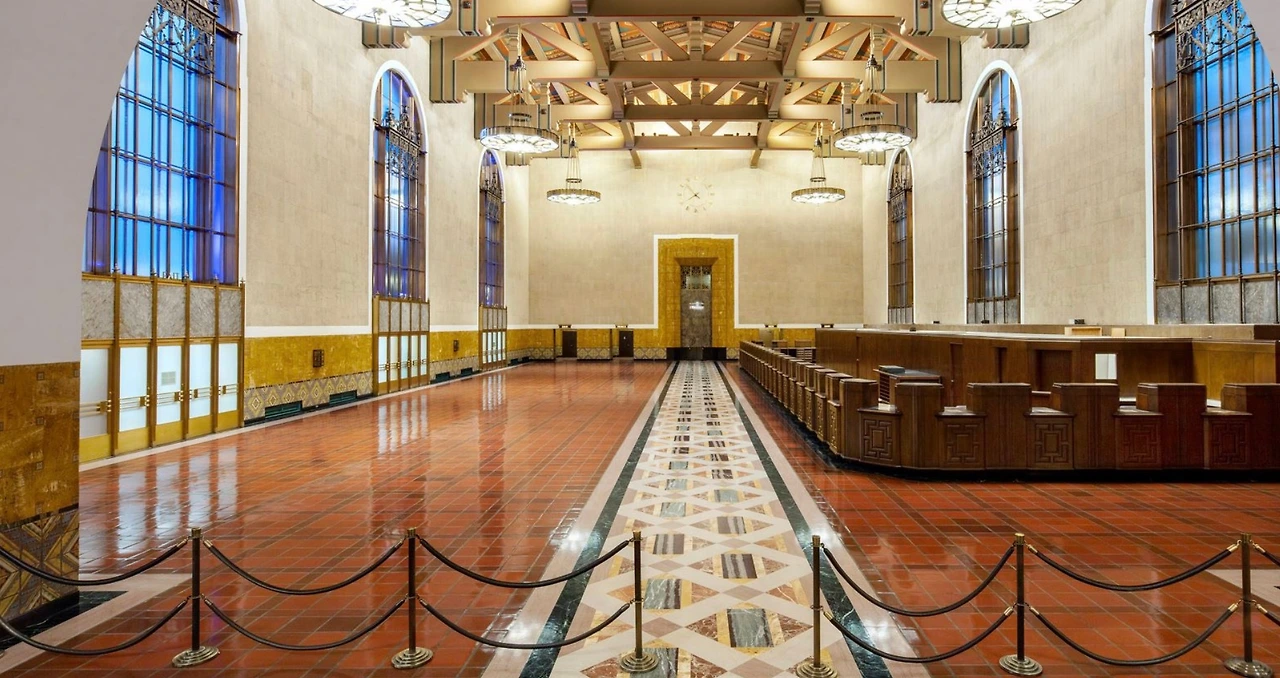드디어 그날, 우버를 불러서 짐을 싣고 LA 유니언 스테이션으로 향했다. 제대로 된 미국의 기차역은 처음이었는데, 로비에 들어서는 순간 단순한 교통시설을 넘어서는 웅장하고 중후한 공간속에서 잠시, 호그와트에 입학하는 신입생이 된 기분을 슬쩍 느껴본다. 1930년대에 지어졌다는 기차역 내부는 넓다못해 광활했고, 높은 천장과 거대한 아치형 창문, 독특한 타일바닥, 화려한 장식, 딥한 컬러의 목재마감과 가죽벤치가 어우러내는 고풍스러운 느낌에 압도되었다. 한곳에서는 사진전시회가 열리고있었고, 티켓 창구가 저멀리 보였다. 기차역에 도착했을 뿐인데, 이미 유서깊은 관광지에 온듯하다.