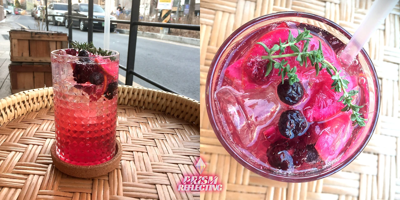 트리플 베리 에이드(가장 무난한 선택이자 내겐 스테디셀러 아이템), 밖이 많이 춥고, 속이 편하려면 생강차, 지금이 딸기 시즌이라면, 딸기나 청포도 에이드와 같은 제철 과일 에이드를 추천한다!