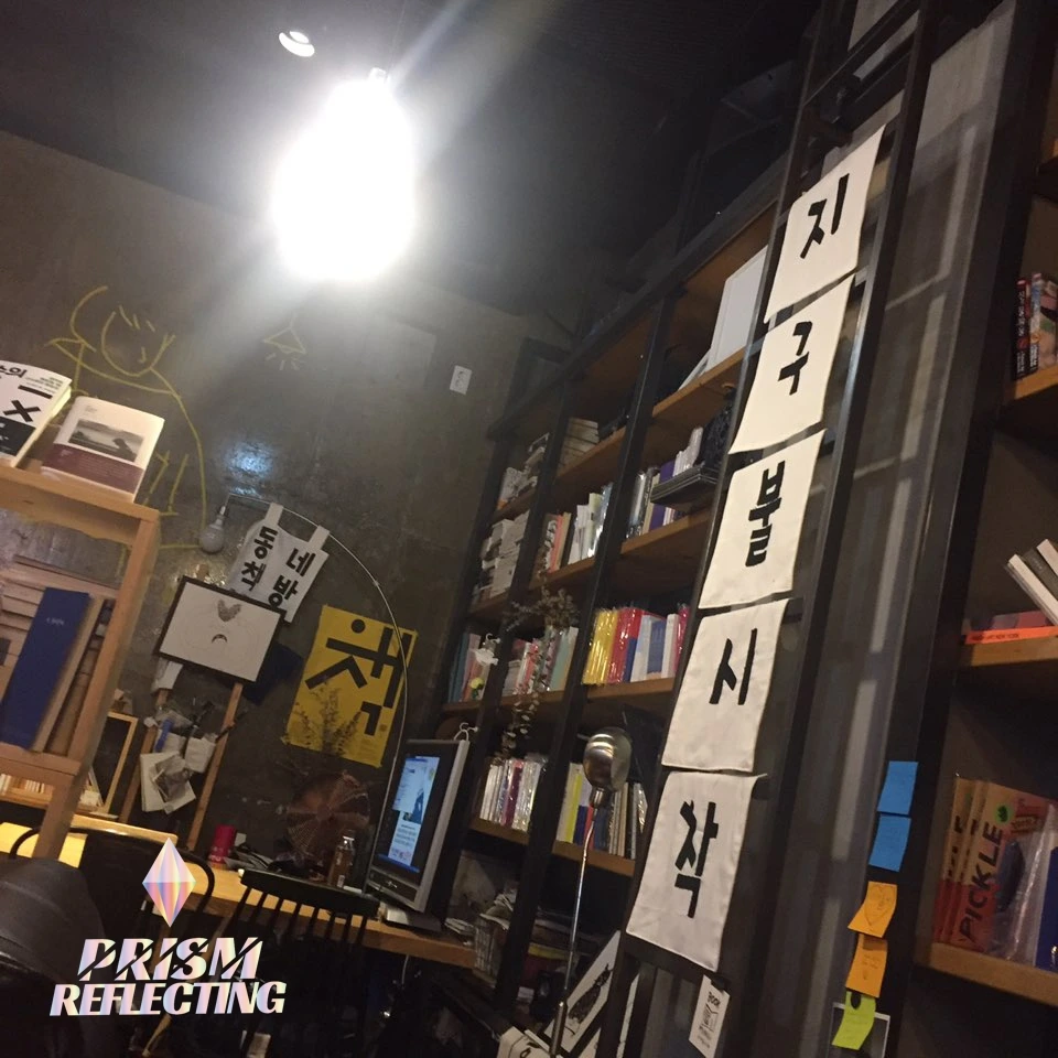 지구불시착은 독립출판과 기성출판물을 다루는 독립책방이다. 지금은 <마을과 마디> 장소로 이동했지만, 이전엔 조금 더 멀리 떨어진 상가 안에 오피스 공간에 자리 잡고 있었다. 가운데 책상이 놓여있고, 큰 소파 뒤와 양쪽엔 책과 사장님이 만드신 노트나 메모지, 배지가 가득했다. '독립 책방' 하면 지구불시착이라 할 정도로 사장님의 감성은 대체 어디까지 멋지실 셈일까 싶을 정도로, 지구불시착은 너무나도 독특하고 멋진 장소였다. 친구는 어떻게 친해지게 됐는지 기억이 안 난다고 했던가. 지구불시착은 그런 장소다. 갑자기 친해져 있어서 보니, 어떻게 친해지게 되었지? 생각하게 만드는 곳.