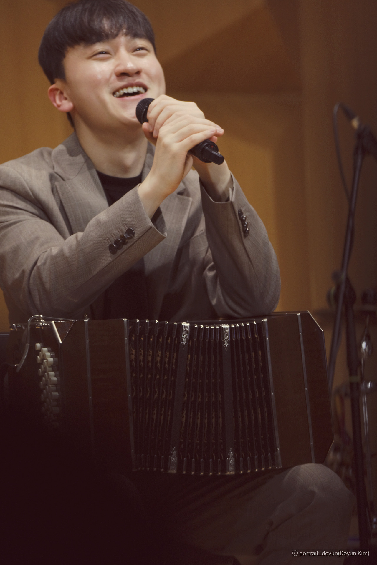 그의 존재를 안건, 반도네오니스트 고상지 님과 함께한 바이올리니스트 김아람 님의 <해빙기> 공연에서였다. 공연이 끝나고 짐을 챙겨 나가려는 사이사이로 아티스트들과 지인들이 작은 인사들을 나누고 있었다. 멀리서 봐도 작곡가 관상을 한 말간 얼굴을 한 사람이 눈에 띄었다. 우연은 우연을 다시 불러일으켜 그가 태그된 사진을 보았고, 태그를 따라 그의 인스타그램에 들어가 보았다. 정말 놀랍게도 그는 정말 음악을 하고 있었으며, 좋아라 마지 못하는 '반도네온' 악기를 연주하는 반도네오니스트였다. 그가 링크로 걸어둔 유튜브 채널을 타고 들어가니 어마어마한 영상들이 나온다. 8년 전까지 이어지는 그가 이뤄온 음악 발자취는 용감했다. 그의 음악 스펙트럼은 대단했다. 국악 작곡을 하기도 하고, 미사 탱고란 어마어마한 시도를 하기도 했다. 프로그램 노트라고 할 수 있는 <더보기> 란에도 그는 쉬운 말들을 엮은 몇 문장으로 곡을 설명했다. 소개글을 보는 눈을 재빠르게 거둬 귀로 듣게 했다. 마치 이 이후에 일어나는 모든 일은 듣는 이의 몫이라는 듯.