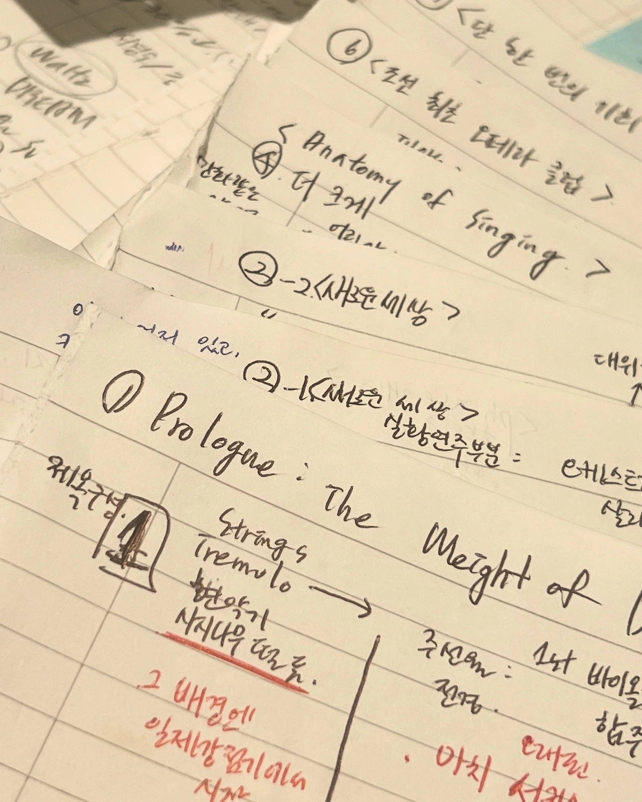 내겐 <일 테노레>가 그랬다. <일 테노레> 음악을 들으면서 '왜'라는 질문을 쫓아가는 시간이 너무 행복했다. 내 안에 있던 경계를 넘어서는 일도 했다. 지금도 나는 감히 지휘를 배워본 적 없으면서 윌과 휴가 만들어 준 세계를 헤집어 나가듯 지휘한다. 눈을 감고 무대 위에 있는 배우들에게 더 어떤 감정이 올라와야 하는지 눈빛을 주고 받는다. 뭐라도 된 것처럼 꿈을 꾸는 지금 이 시간이 내게 얼마나 더 있을까. <일 테노레>는 내게 뮤지컬 이상의 의미를 지닌다. 음악을 사랑하는 이선이처럼, 또 다른 꿈을 위해 꿈을 포기하는 진연의 길을 걷는 것처럼, 깊이 사랑할 줄 아는 수한이처럼 사랑을 알려준 극이다. 나는 아직도 거센 비가 내린 뒤에 오는 비내음과 눈부신 신록을 기다린다.