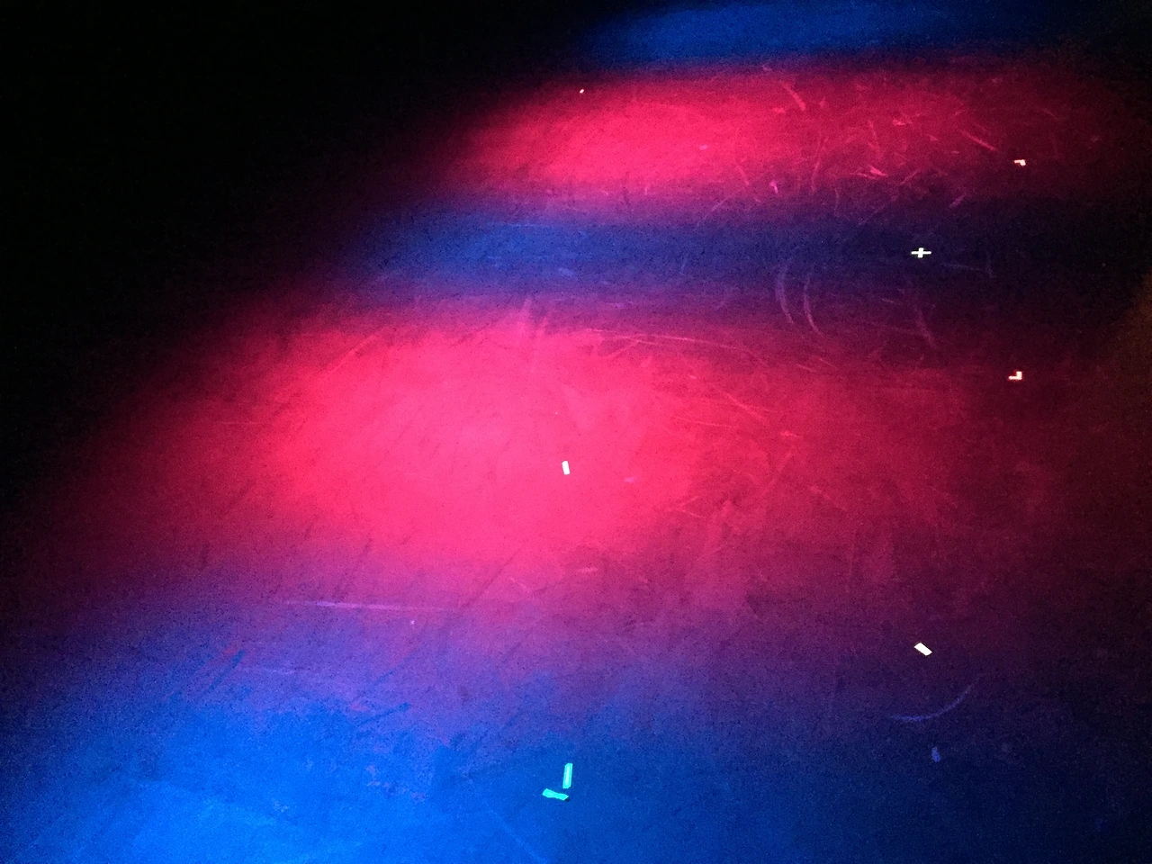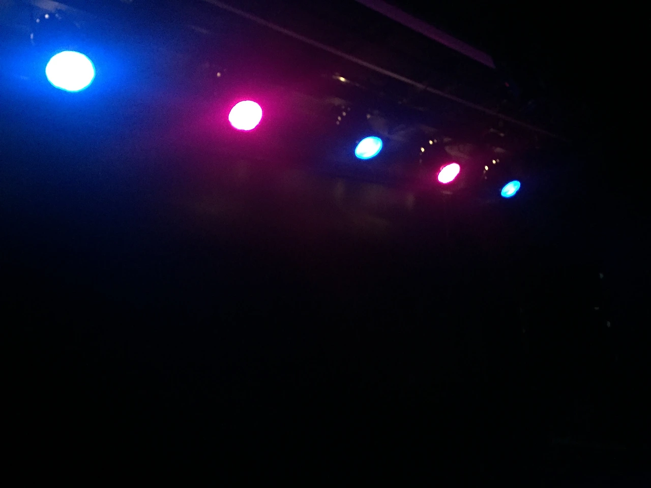 무대위엔 붉은색 조명과 파란색 조명이 어우러져 있다.