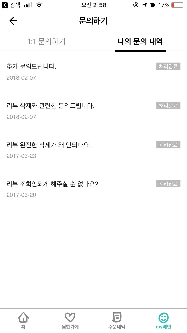 닉네임을 누르면 그간 내가 어디서 뭘 시켰는지 알 수 있었기 때문이다. 리뷰가 나의 행동반경을 유추할 수 있는 정보가 된다. 더군다나 그렇게 댓글이 달린 이상 내가 삭제할 방법은 없었다. 특정인이 된 나는 삭제할 방법을 찾아 고객센터에 문의와 전화를 했다. 닉네임을 누르면 나의 모든 리뷰가 공개되는 것과 삭제할 방법에 관해 물었다.