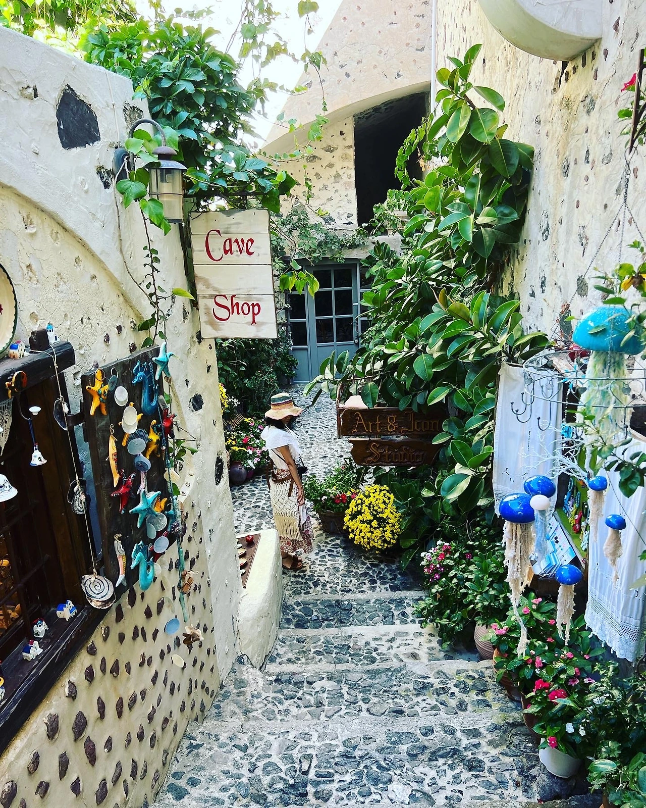 피라 골목에서 만난 갤러리 샵과 부겐베리아 꽃
