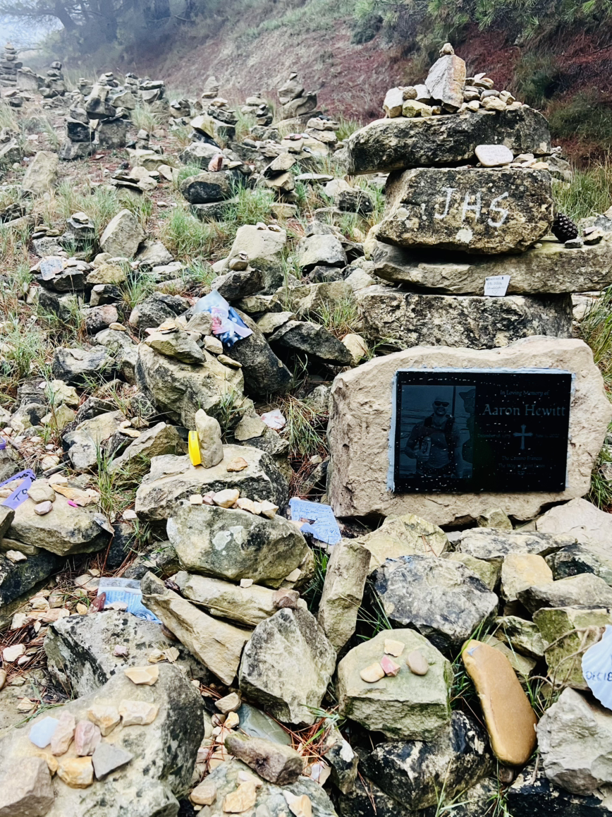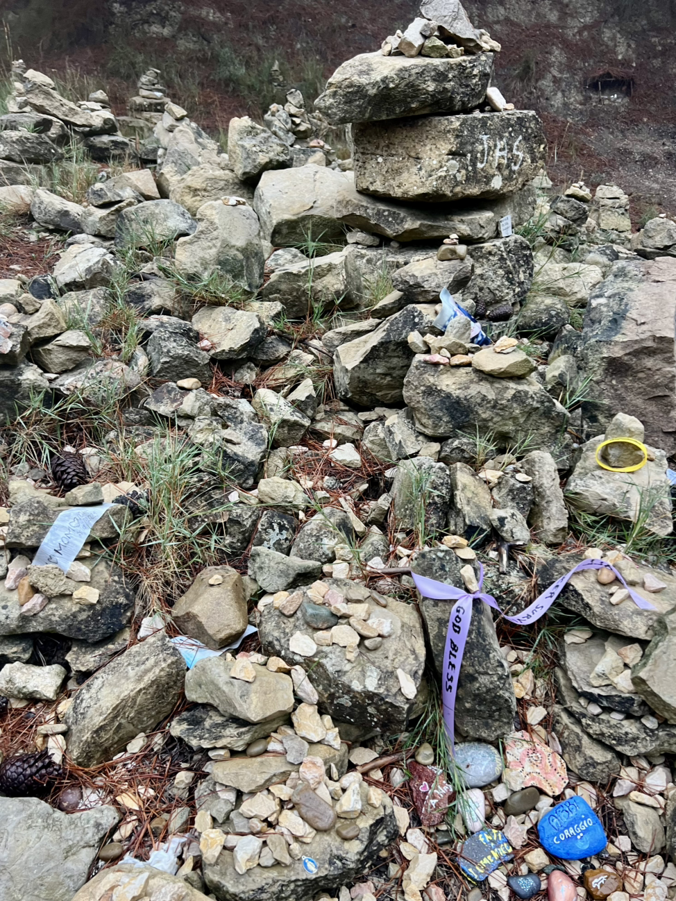 그곳에는 셀 수 없는 작은 돌멩이들이 하나, 둘씩 쌓여 하나의 거대한 돌비석이 되어 누워 있었다. 그 사이로는 누군가들이 남기고 간 수많은 쪽지와 사진들이 놓여 있었다.