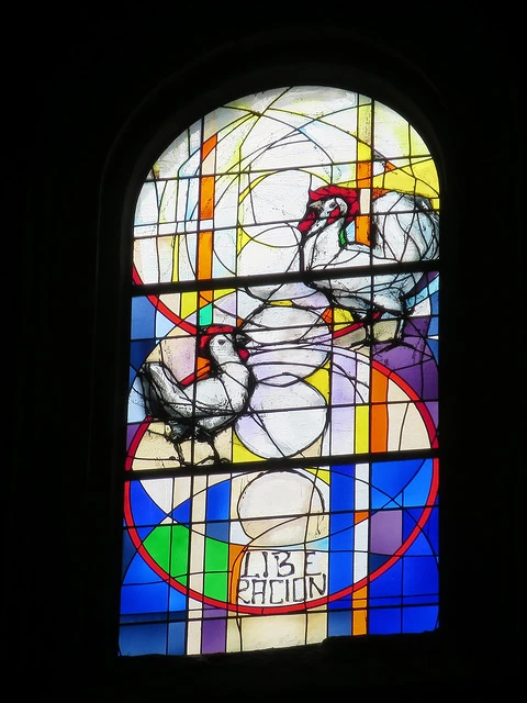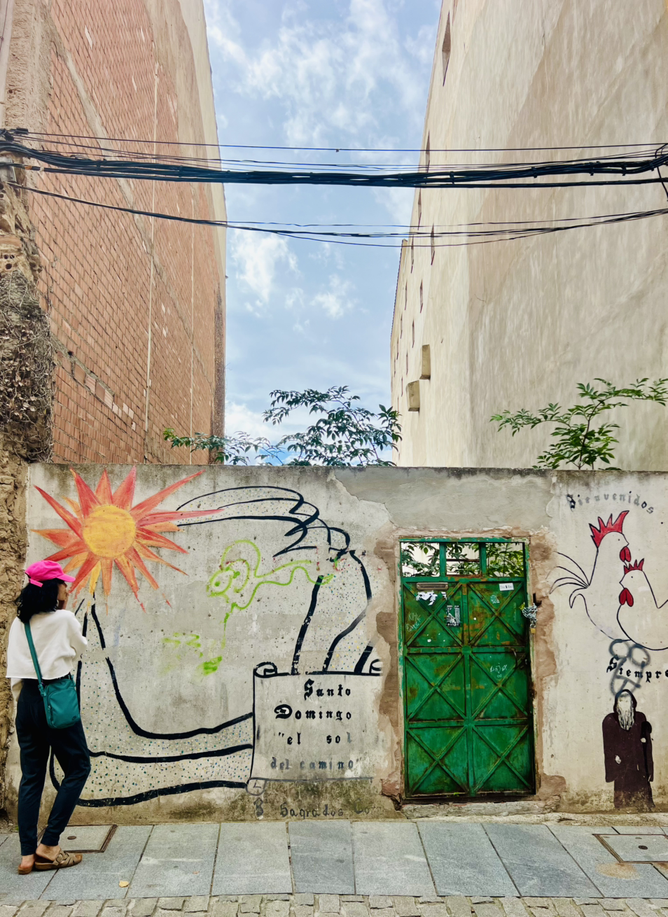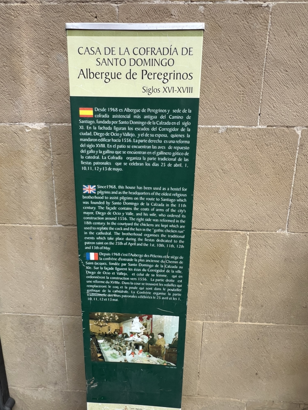 알베르게(공립) 입구부터 가는 곳마다 치킨 그림이나 벽화를 흔히 볼 수 있다. (치킨에 얽힌 설화에 관한 글은 별도로 아래에 첨부했습니다).