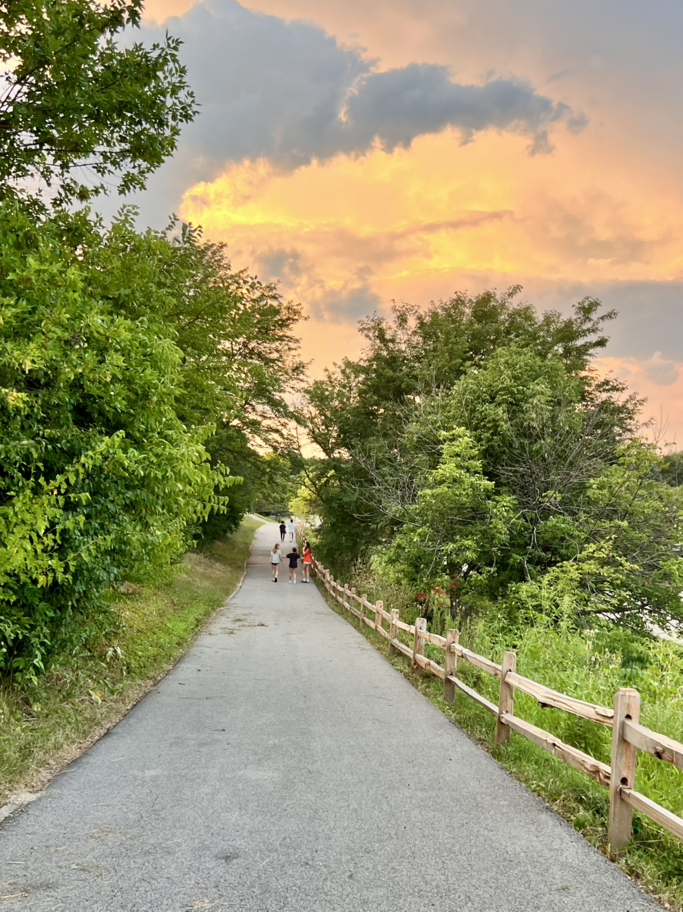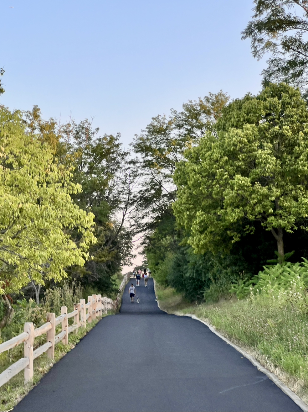 공원길은 개를 산책시키는 사람들부터 가벼운 산책을 하는 사람들, 자전거를 타는 아이들, 심지어 데이트족들로 붐비기시작한다.