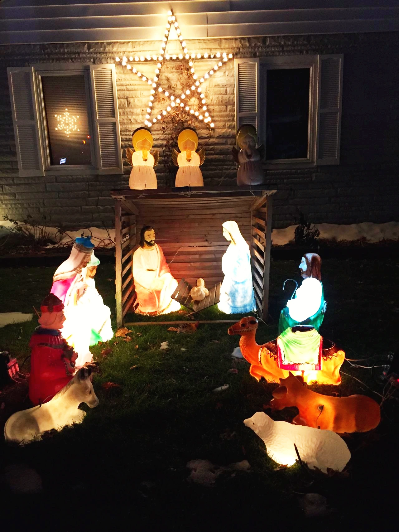 곳곳마다 집 앞 잔디밭에는 " 말 구유에서의 아기 예수의 탄생과 동방박사들의 절 하는 장면을 연출하는