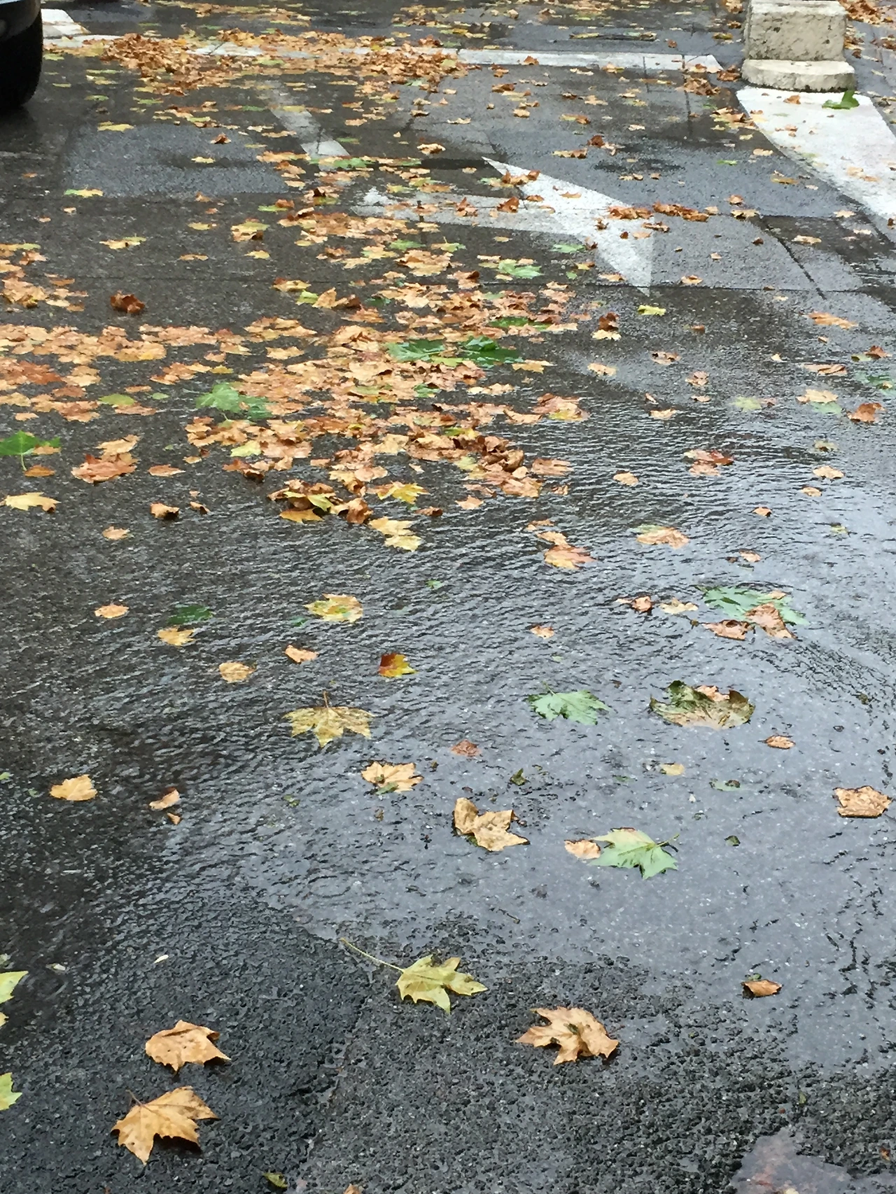 여름날에도 가을처럼 낙엽들이 비속에 떨어져 내린 거리와 꽃들과 향긋한 바람이 있는