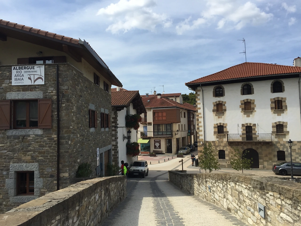 텅 빈듯한 고요한 마을을 지나 알베르게에 이르면 바로 코앞에 주비리 마을로 들어서는 예쁜 돌다리가 나온다. 다리 아래로는 맑은 개울물이 집 담벼락과 숲길을 따라 유유히 흐른다. 그 돌다리가 마음에 들어 한참을 기대고 서 있었다.