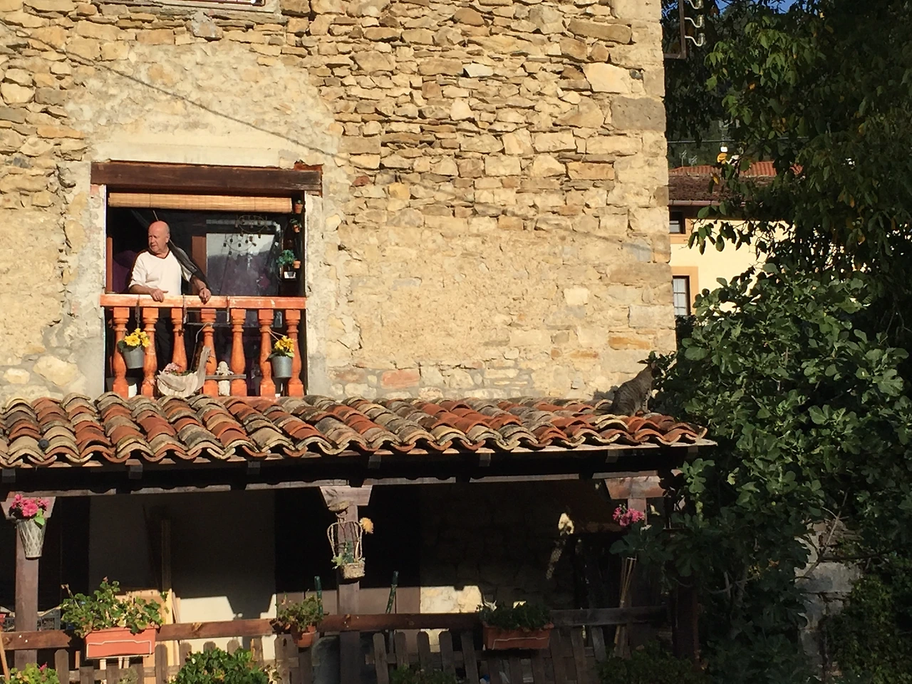 카페 옆으로는 집이 한채 있었다. 이층 창문으로 고개를 내밀고 오가는 순례자들을 내려다보는 어떤 할아버지가 보였다. "어디 보자~ 장사 잘되고 있나~" 하는 표정이다.