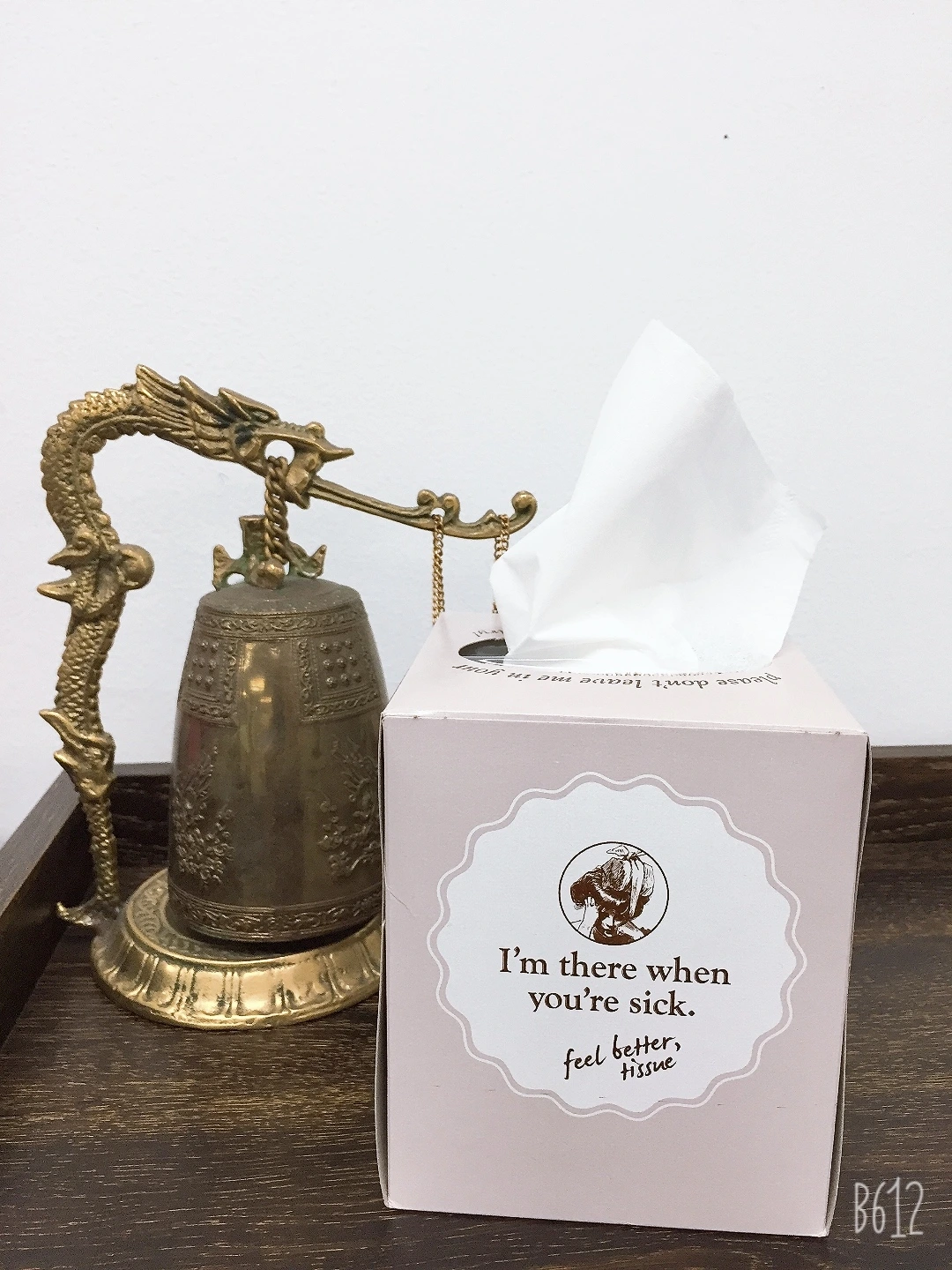 I'm there when you're sick./ feel better, tissue -당신이 혹, 감기에 걸려 콧물이 글썽거릴 때도 내가 닦아 주죠./ 흔쾌를 바랄게요, 티슈가