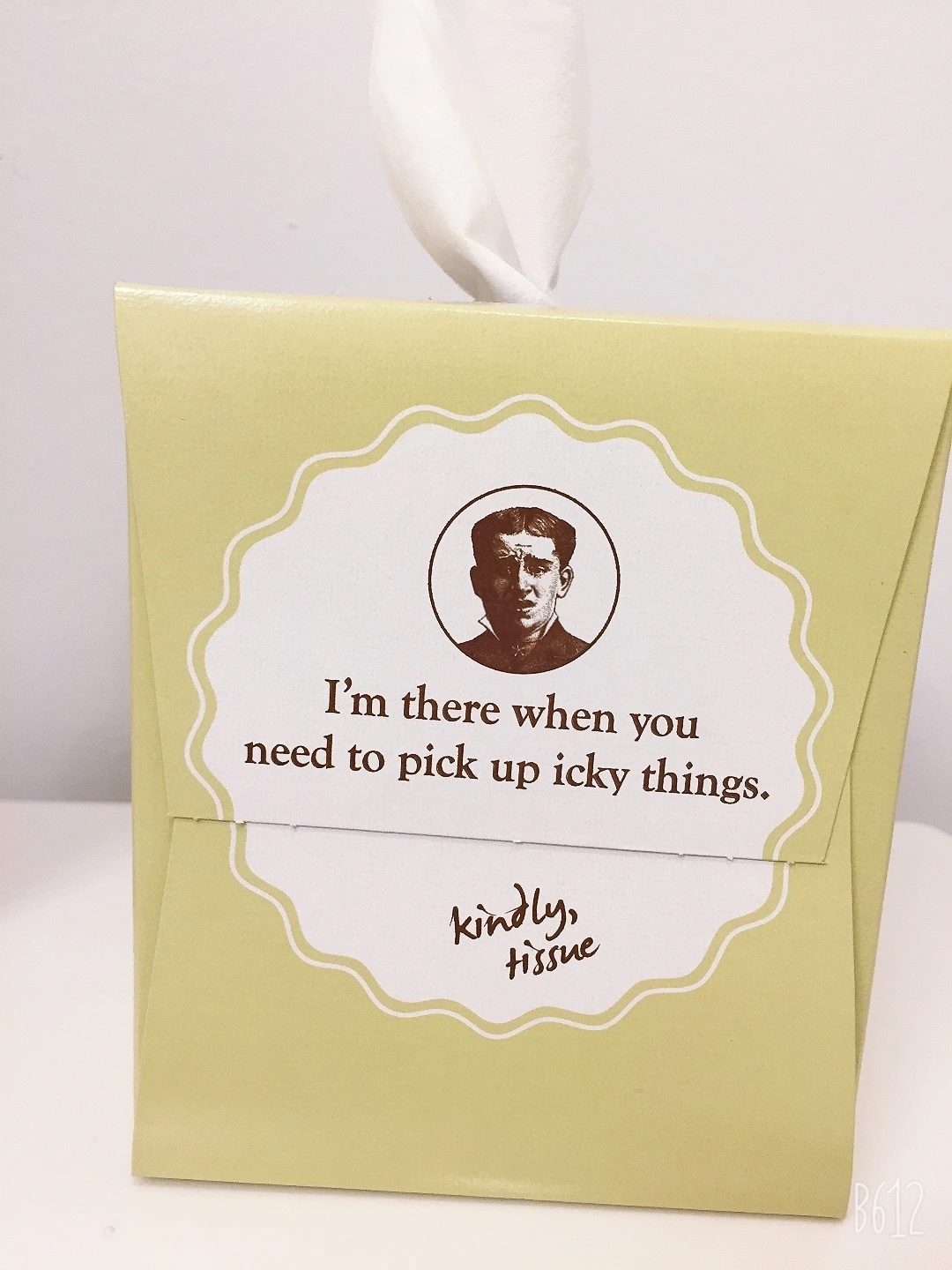 I'm there when you need to pick up icky things./ Kindly, tissue. /더러운 것(찝찝한 것)들을 치워야 할 때도 내가 해 줄게요./ 친절한 티슈죠.