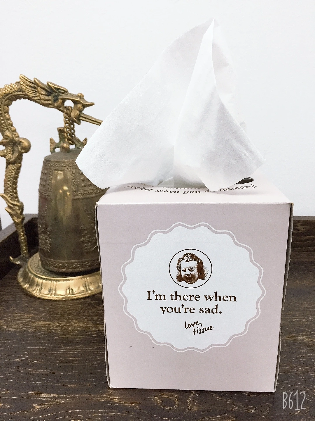 I'm there when you're sad./ Love, tissue-당신이 슬퍼 눈물이 나면 내가 닦아줄게요./친애하는 티슈가.