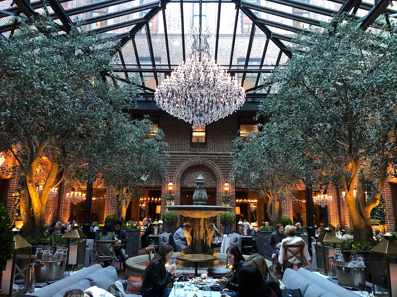 고풍스러운 건물 입구를 들어서는 순간이다. 하늘이 올려다 보이는 유리 천장과 곳곳에 매달려 운치를 더하는 화려한 샹들리에 불빛, 반짝이는 나무들과 홀 중앙을 장식하고 있는 분수(fountain), 현대적이고 세련된 가구들과 소파, 이 모든 것들이 한껏 어우러져 프랑스풍의 우아함과 안락함을 준다.