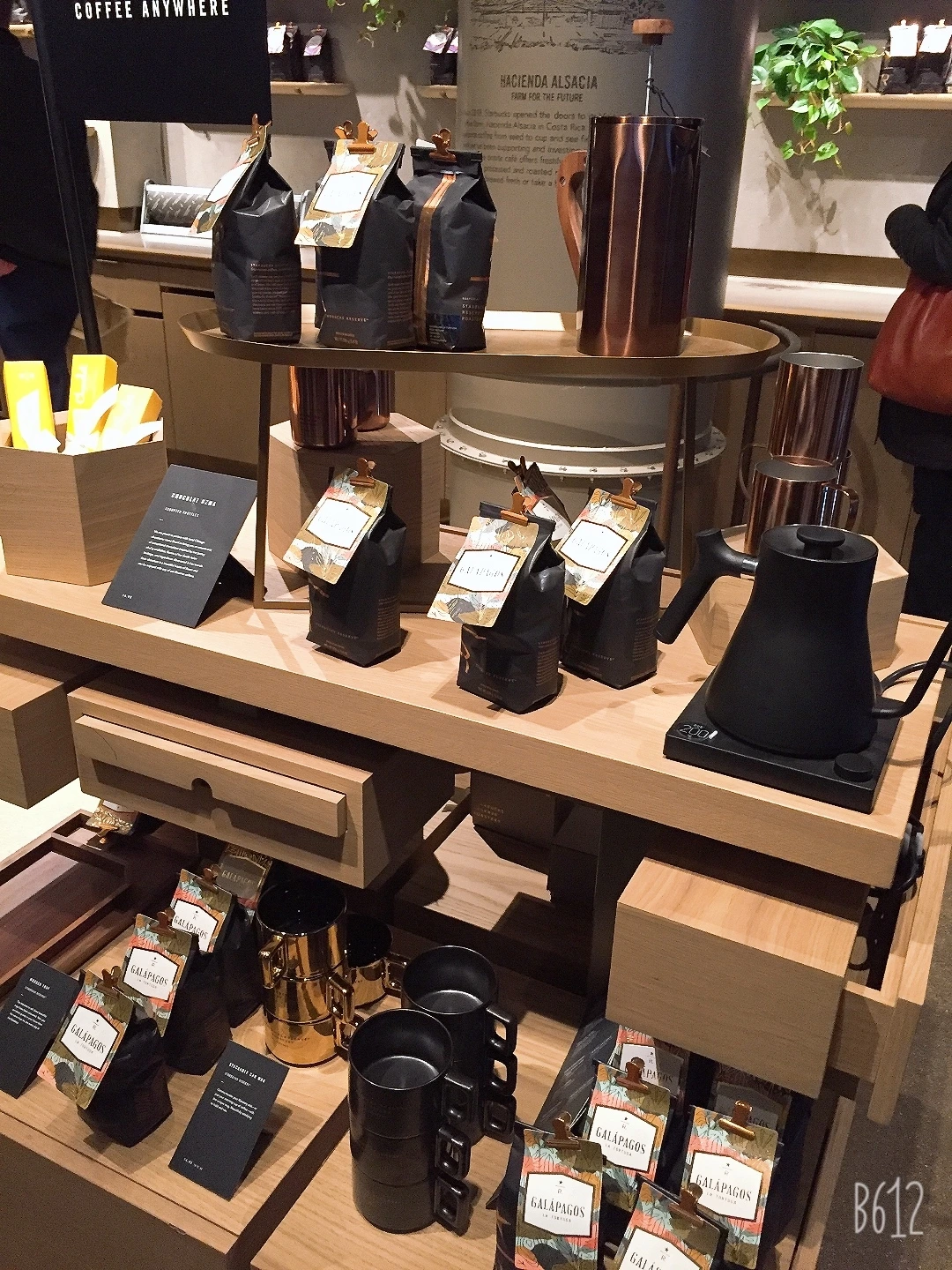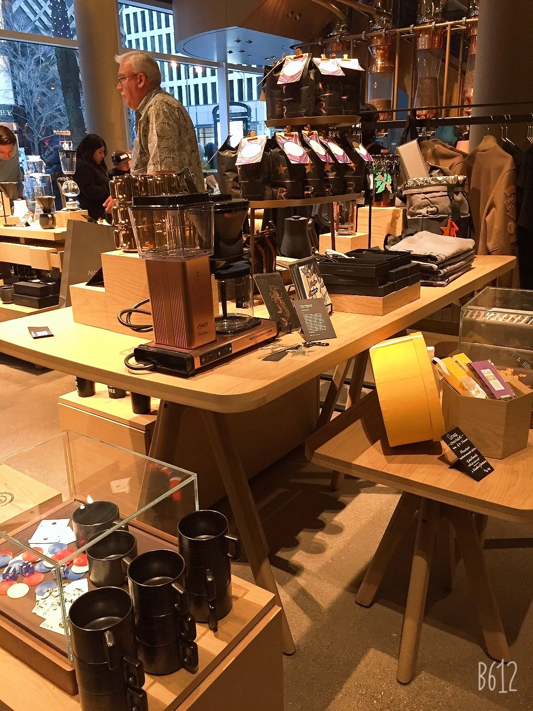 1층 한편으로 돌아가면 작은 가게가 마련되어 있다. 다양한 기프트 상품들이 손님을 끌고 있다. 커피를 만드는 각종 기구들과 "가장 희귀한 커피"라고 쓰인 스타벅스 컵, 가방, 옷, 티셔츠 등이 판매되고 있다.