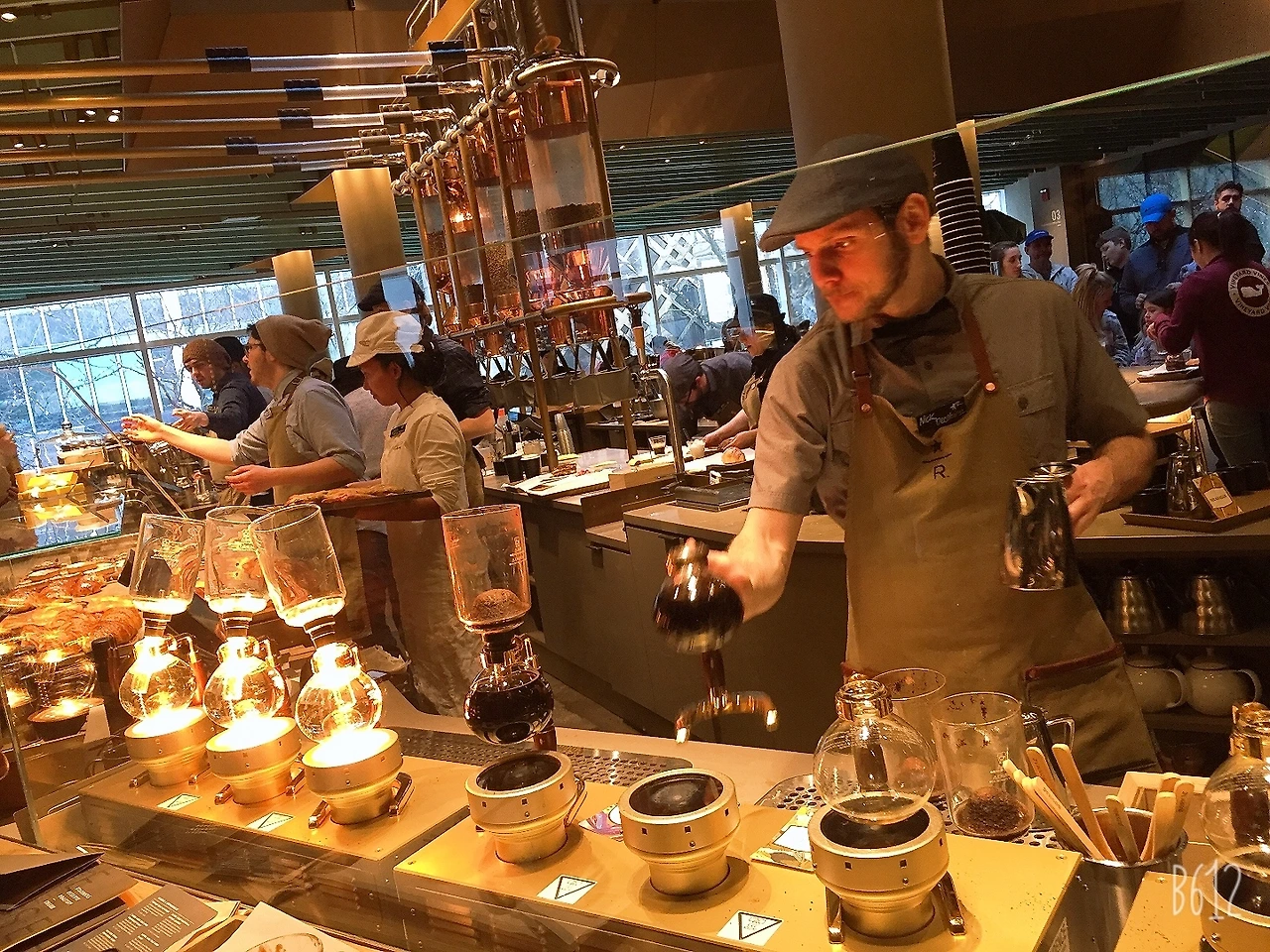 스타벅스 리저브 로스트리 시카고는 마치 수많은 커피 애호가들이 스타벅스라는 커피 스타를 만나기 위해 몰려든 사람들로 호항을 누리고 있었다. 커피를 맛보려는 사람, 바리스타가 만드는 커피를 구경하고, 배우려는 사람들로 북새통을 이루고 있었다.