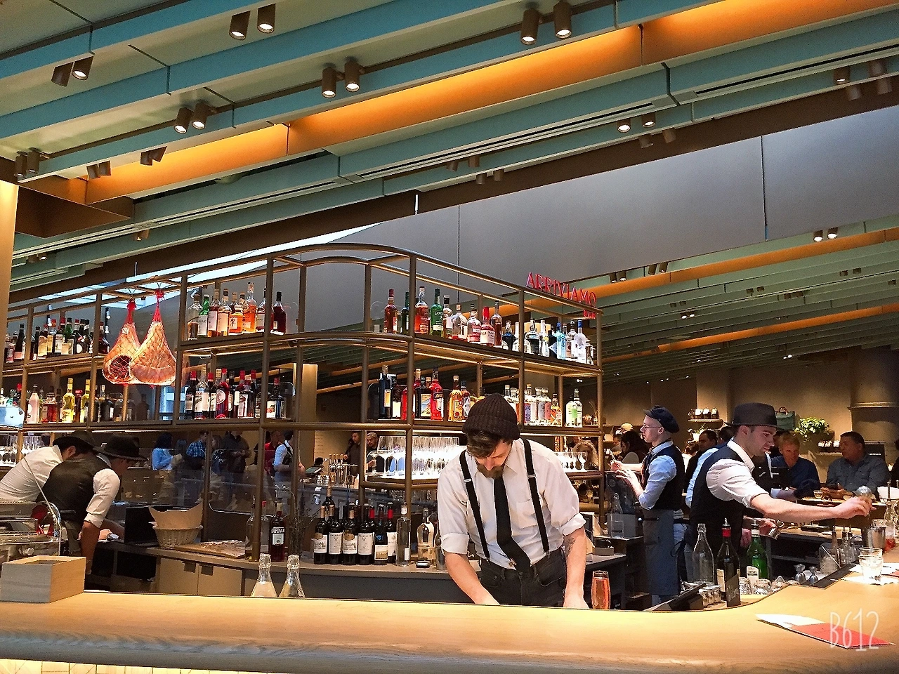 형형색색의 술병들로 진열되어있는 바의 이름은 Arriviamo! 아름다운 이탈리아어다. 뜻은 "여기에 모인 우리(we have arrived)”다.