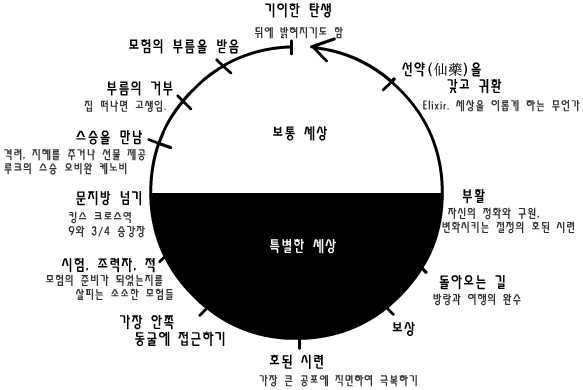 미국의 종교학자 조셉 캠벨은 영웅 설화를 12 단계로 정리했습니다.