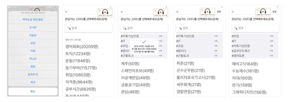 그리고 앱을 시작할 때 관심가는 스터디를 설정하도록 하는데 여기서 또 당황스러운 점이 있었다.