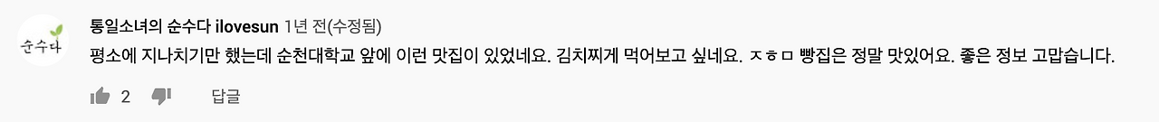오래된 식당에 대한 추억들을 이야기하는 댓글이었다. 지역에 사는 사람뿐만 아니라 지역에 살았지만 지금은 다른 곳에 사는 사람도 반가운 마음에 댓글을 남겼다. 또 순천에 살고 있지만 식당을 몰랐던 사람들은 이런 이야기를 간직한 가게가 있다는 걸 알게 됐다는 반응이었다. 오래된 식당의 추억이 그래도 잘 전달된 것 같았다.