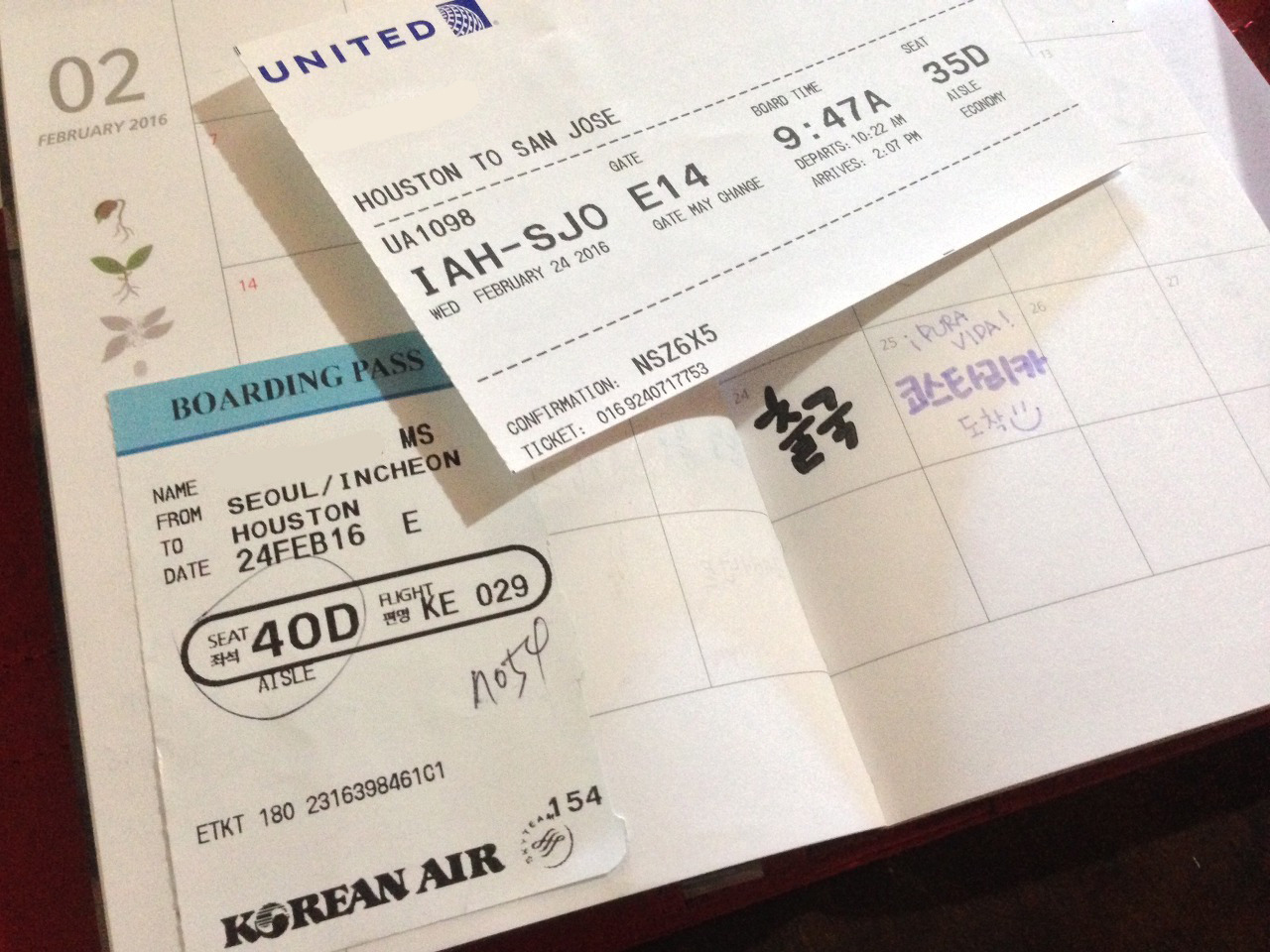 대한항공 기내식. 곤드레나물밥과 해산물 파스타. 둘 다 입에 맞았다. 이렇게 오랫동안 비행기를 타본 건 처음이었는데, 좌석이 화장실 바로 앞자리 통로라 뒷좌석도 없었고 옆좌석에도 사람이 타지 않아 비교적 편하게 올 수 있었다. 두 번의 기내식과 두 번의 간식을 먹으며 13시간을 보내고 나니 미국 휴스턴 공항에 도착. 경유 시간이 촉박해서 살짝 긴장했는데 다행히 딱 맞게 코스타리카행 비행기를 탈 수 있었다.