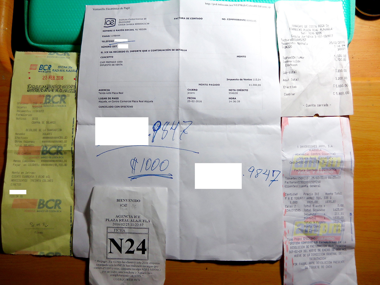 나는 20분 정도 기다려서 한국에서 환전했던 달러를 다시 코스타리카 돈인 콜론으로 환전했다. 영수증을 보여 주고 서명을 하니 한 장을 떼어서 줬다. 은행에 가기 전에 홈스테이비를 내고 남은 돈을 환전했는데, 14만 콜론 정도가 나왔다. 500콜론이 약 1달러이다. 홈스테이비는 달러로 지불하고 아침을 주는 조건으로 한 달에 300달러를 낸다. 싼 값은 아니지만 근처에 지낼 만한 적당한 집도 없고 자취를 하려면 가구나 가전제품을 전부 사야 한다. 이곳에서는 소위 말하는 '풀 옵션'인 집을 구하는 게 매우 어렵다.