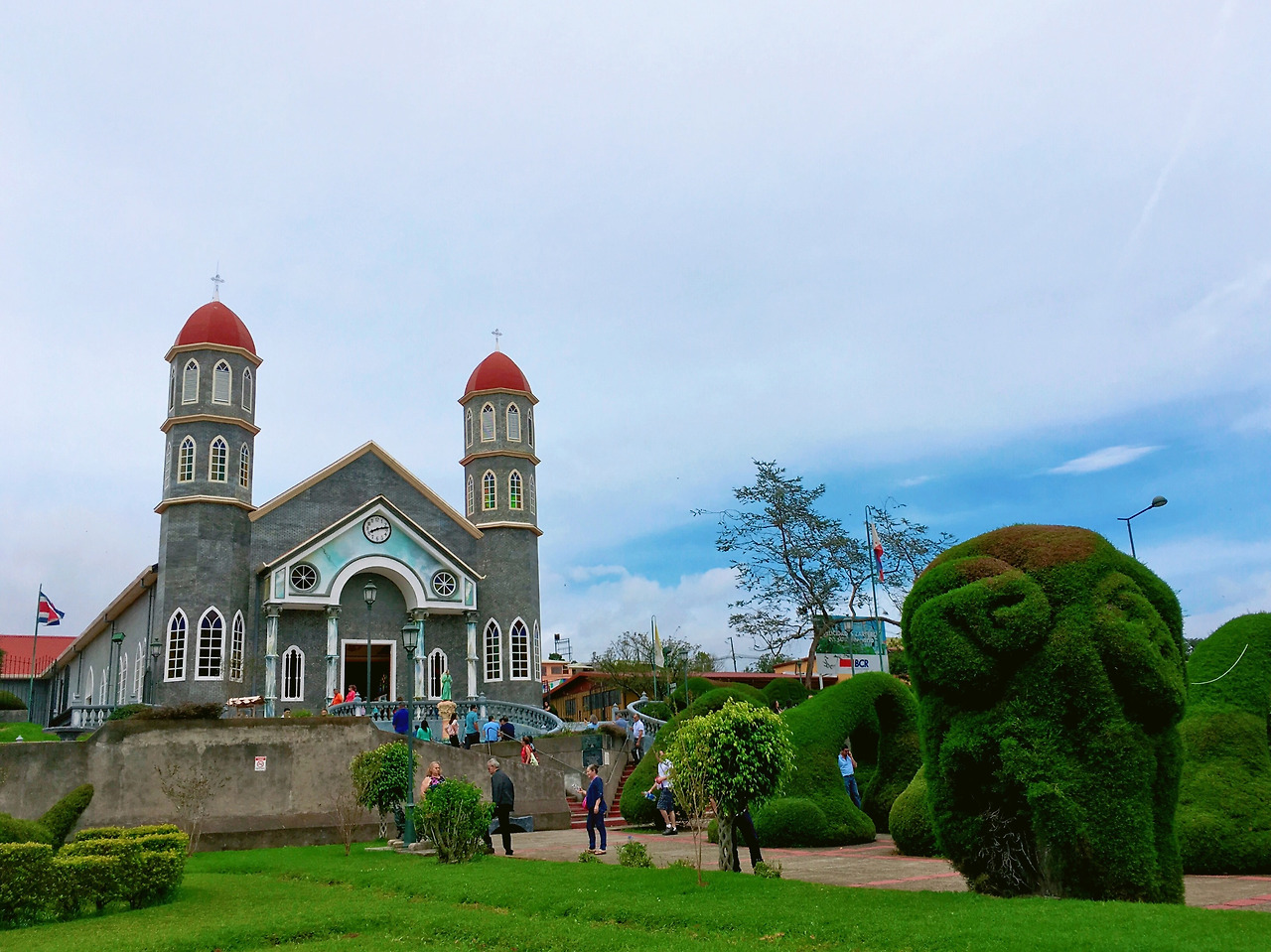 Parque de Zarcero (Zarcero)_ 빠르께 데 싸르쎄로 (싸르쎄로) : 코스타리카의 도시에는 대부분 그 지역을 대표하는 성당이 있고 성당 앞에는 항상 공원이 있다. 지금까지 본 성당 중에 제일 예쁜 성당. 동물 모양으로 꾸며진 나무들이 있는 정원도 한몫한다. 작년에 이 정원을 아주 오랫동안 관리하던 정원사 할아버지가 해고돼서 뉴스에도 나오고 난리가 났었다.